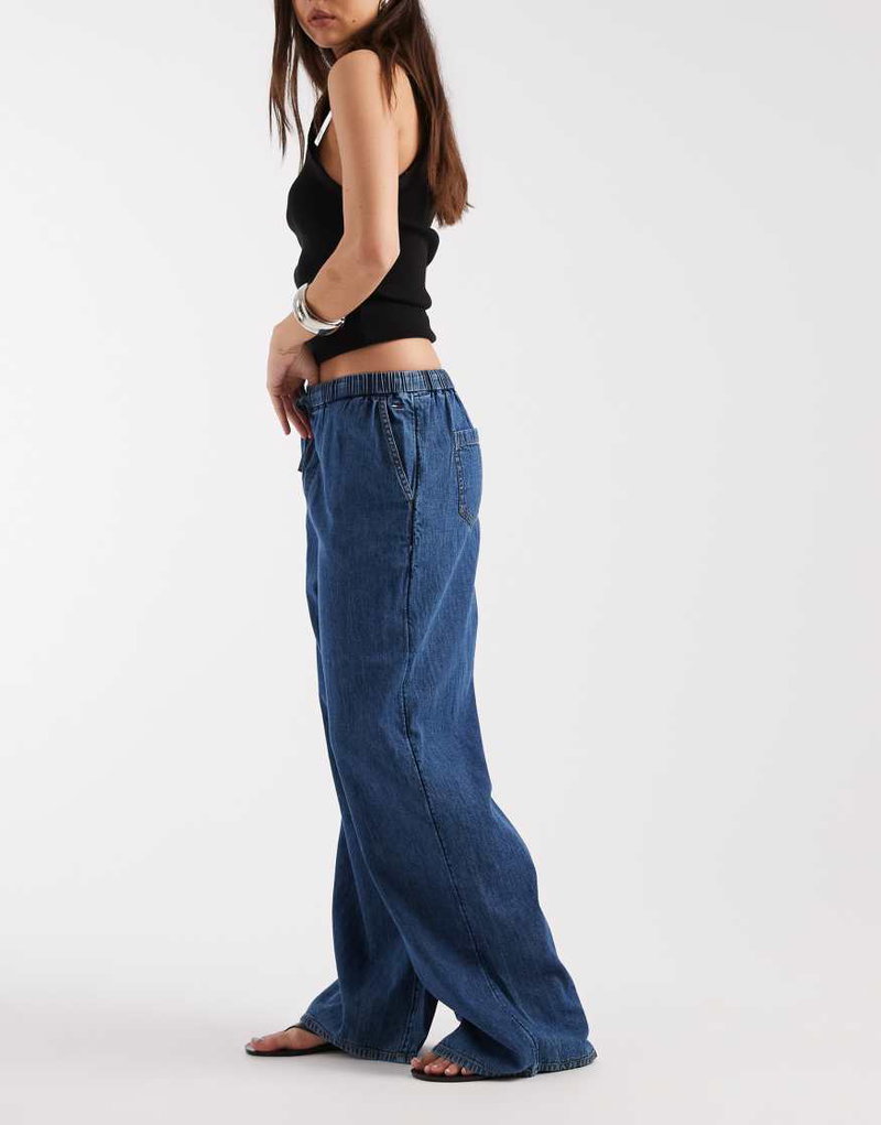 Pull On Chambray Pants In Mid Wash Blue