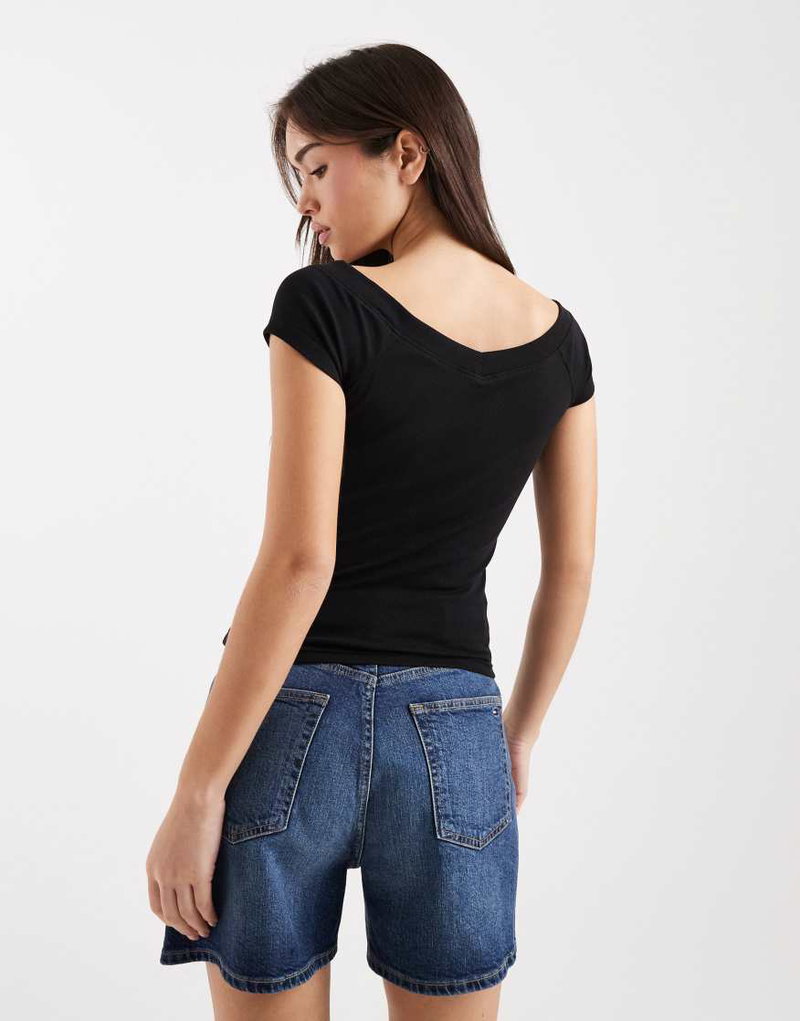 Rib Knit Off The Shoulder Top In Black