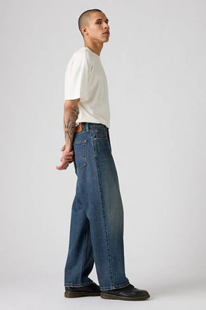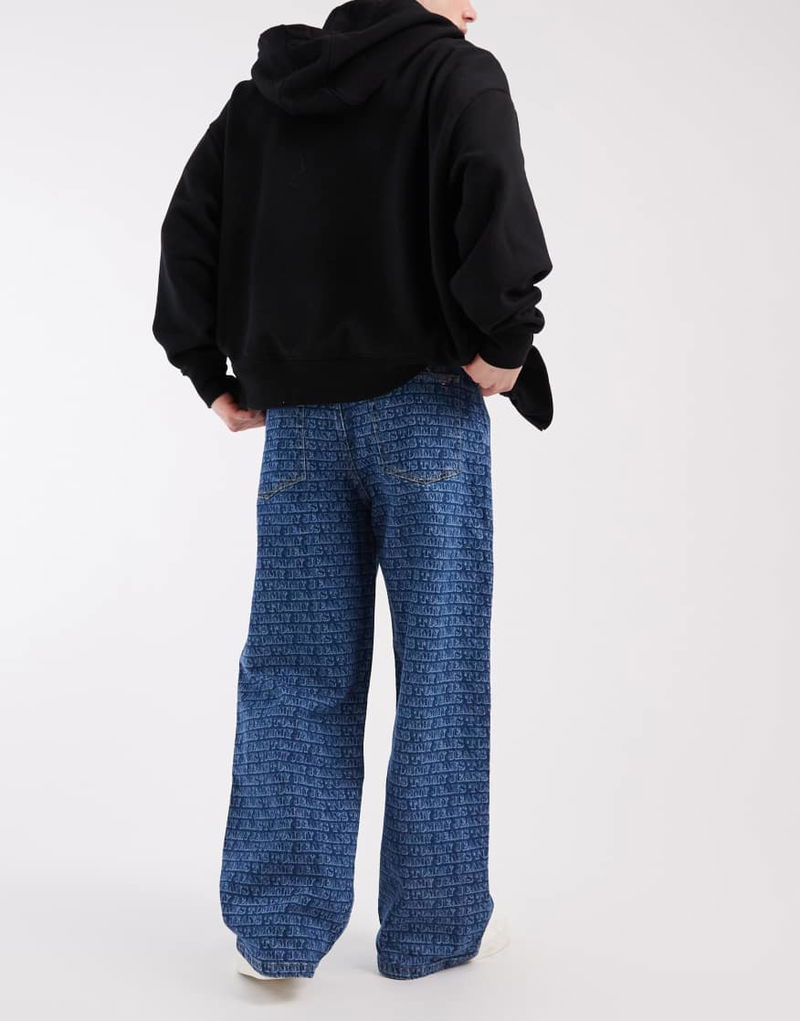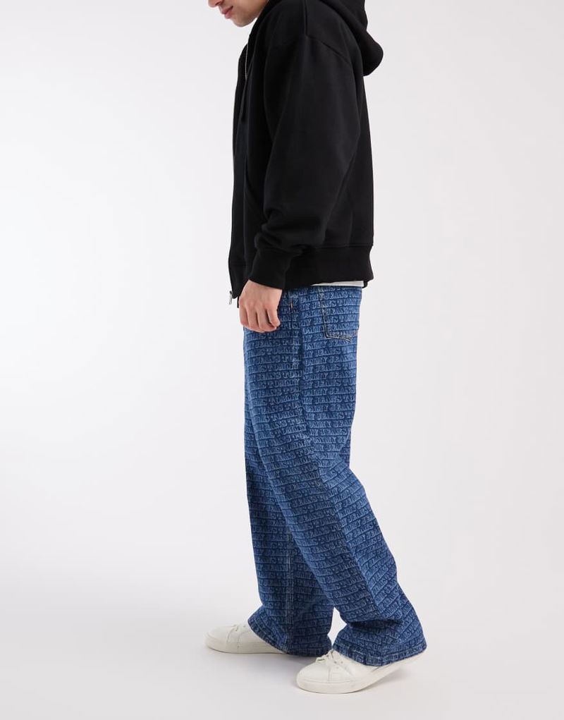 Theo Baggy Jeans With All Over Print In Mid Wash Blue