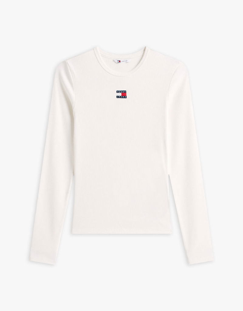Tommy Badge Slim Long Sleeve T-shirt In White