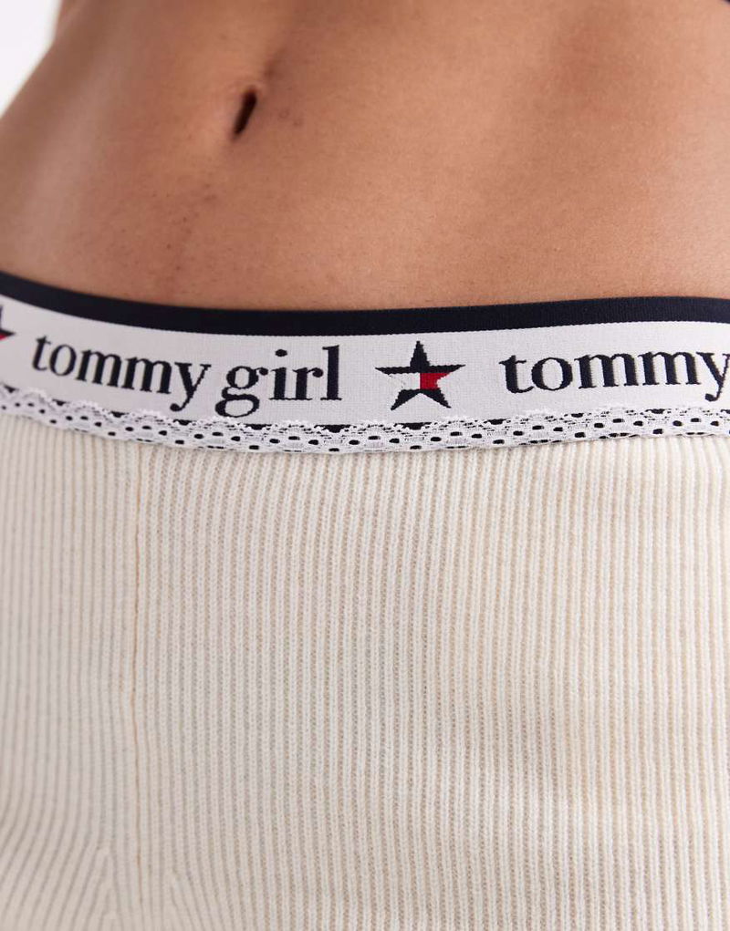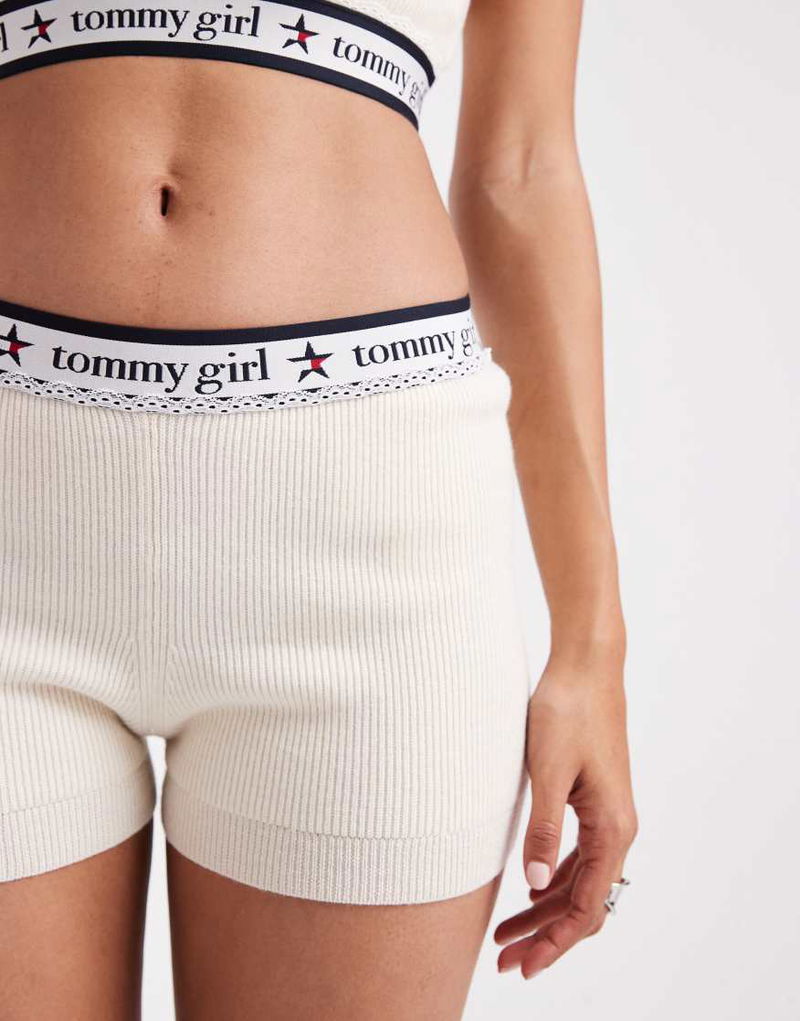 Tommy Girl Knitted Wool Shorts With Logo Band In Cream