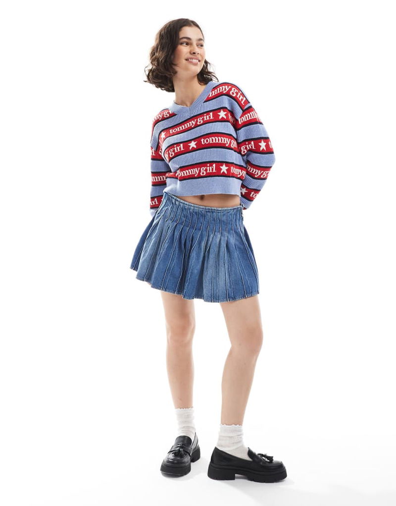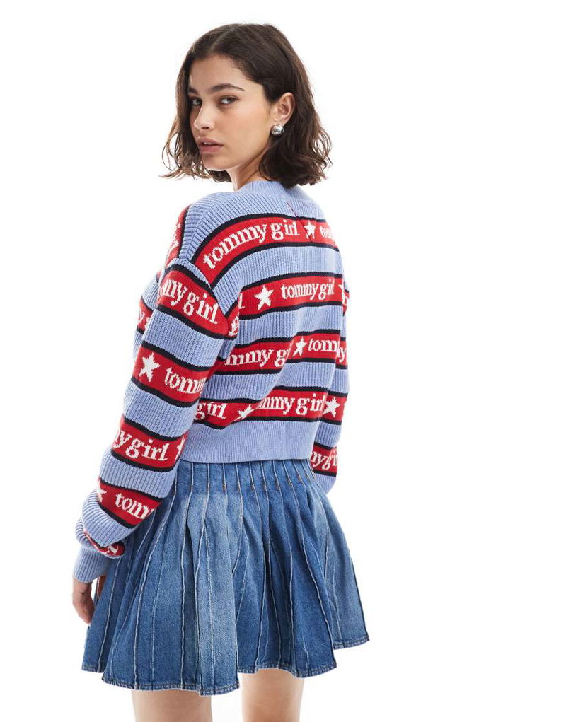 Tommy Girl Stripe V Neck Sweater In Blue And Red