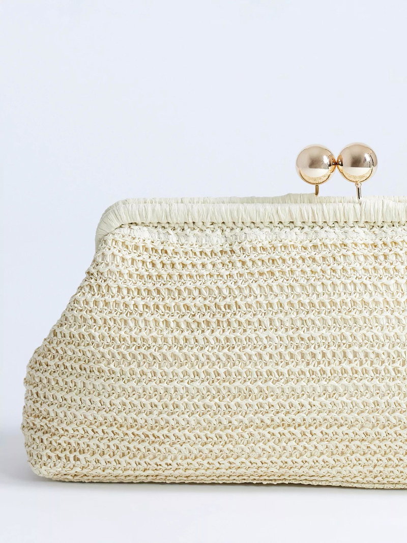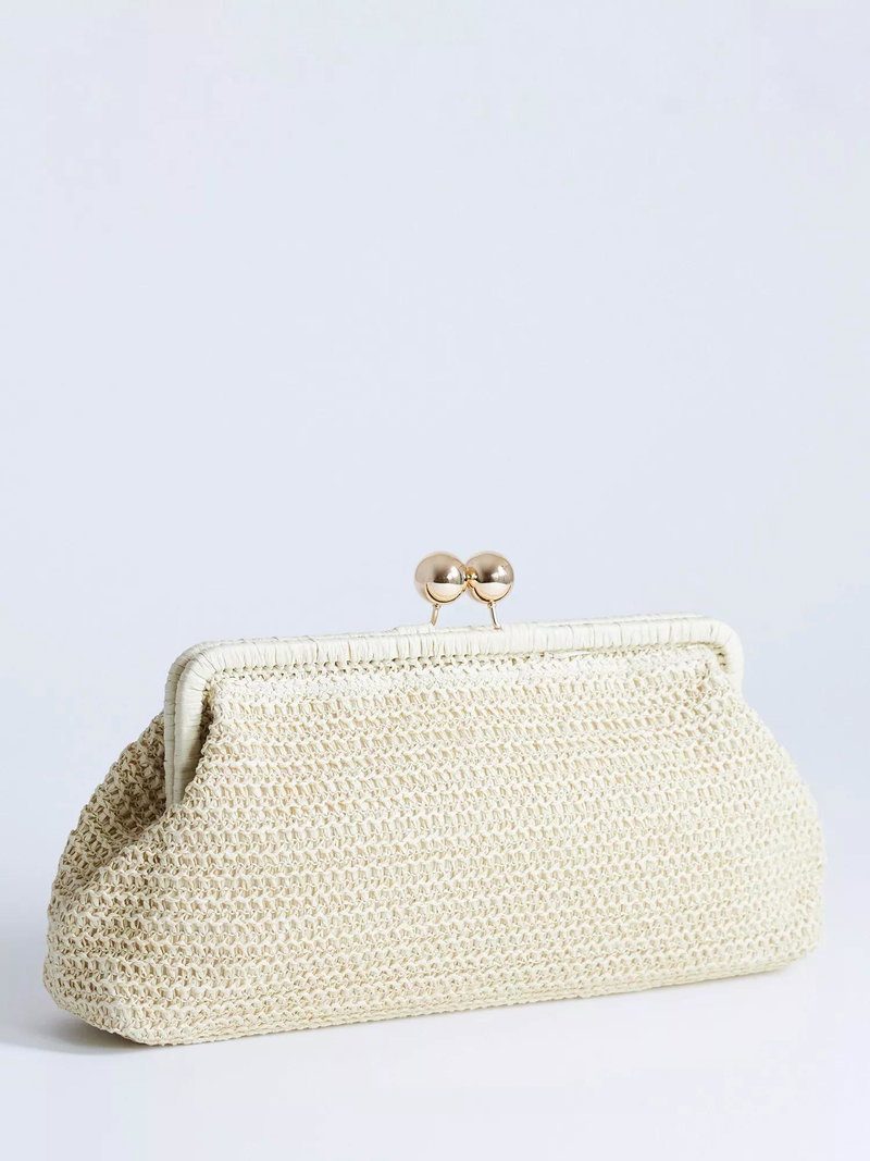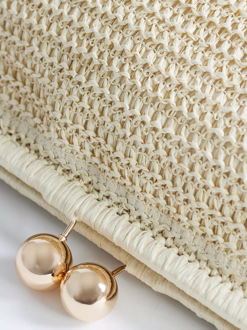Margate Leather-Trimmed Woven Raffia Clutch Bag