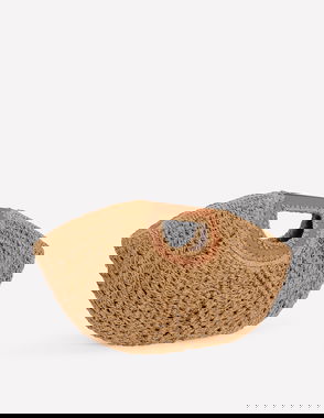 Leather-Trimmed Raffia And Paper Bucket Bag