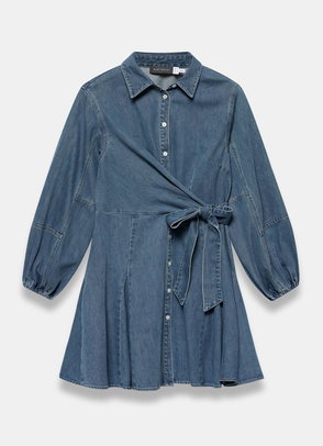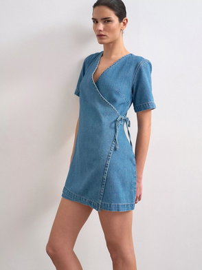 Denim Wrap Mini Dress, Blue