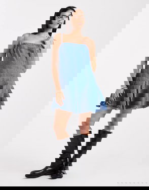 Denim Mini Dress - Blue