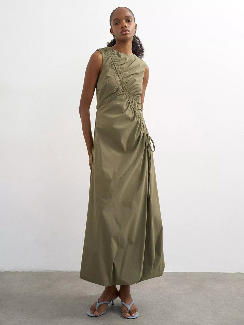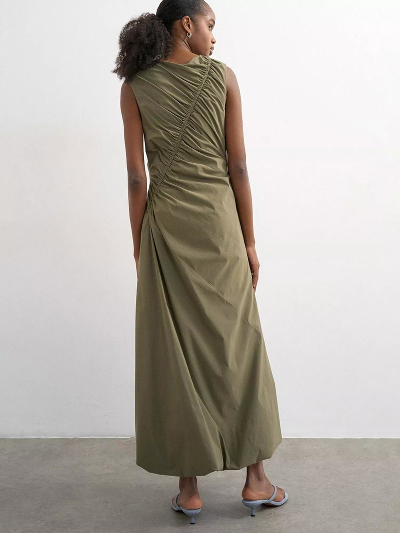A sleeveless maxi dress by Topshop. Its A-line shape and comfortable crew neck keep feeling at ease, finished with an asymmetric drawcord detail. A smart choice for your everyday or summer plans.