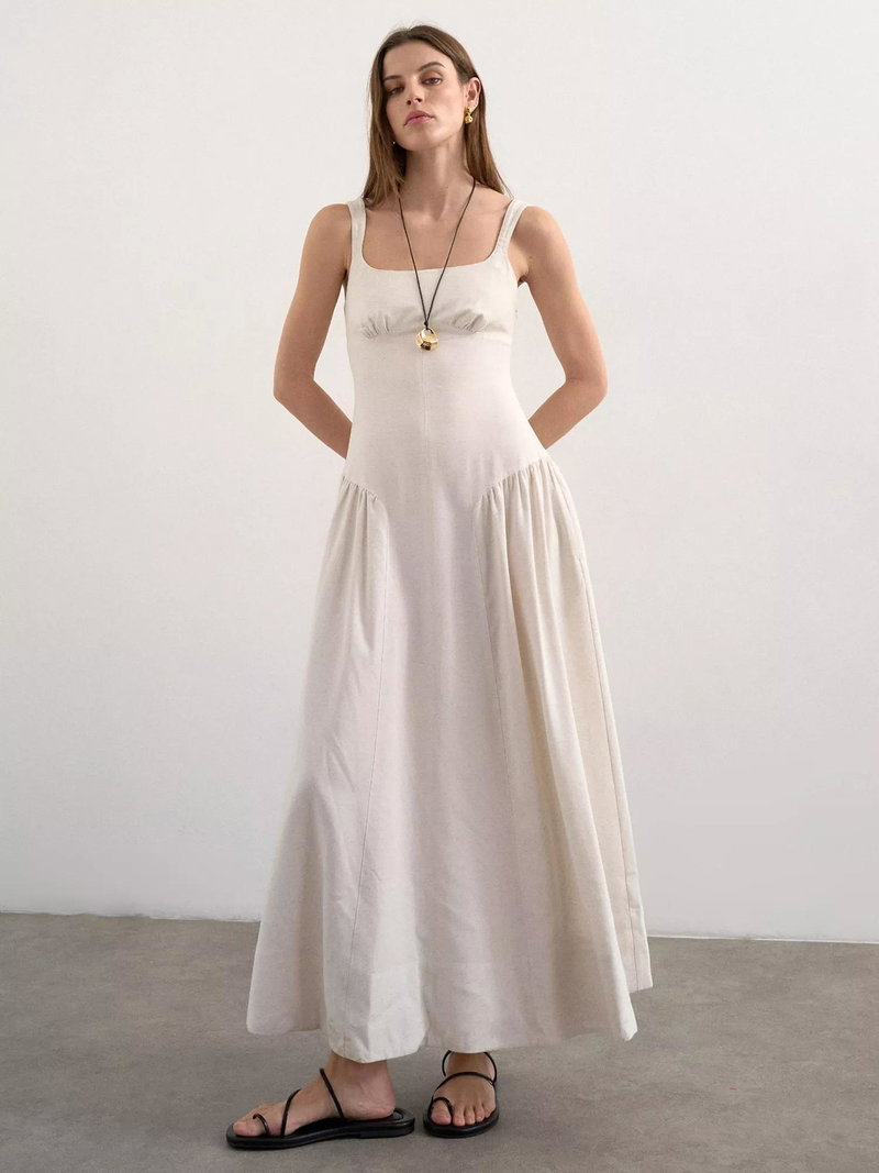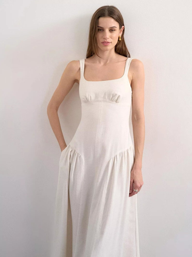 Feel ready for any sunny day. This drop waist midi A-line dress keeps you cool and comfortable with a sleeveless cut, square neck, and easy fit. Perfect for strolling, meeting friends, or simply feeling your best, it's finished with side pockets.