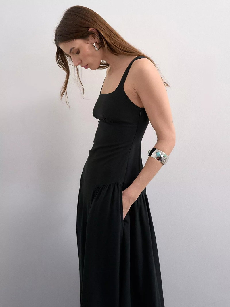 Feel ready for any sunny day. This drop waist midi A-line dress keeps you cool and comfortable with a sleeveless cut, square neck, and easy fit. Perfect for strolling, meeting friends, or simply feeling your best, it's finished with side pockets.