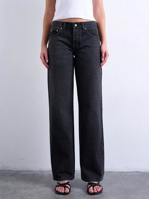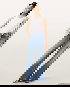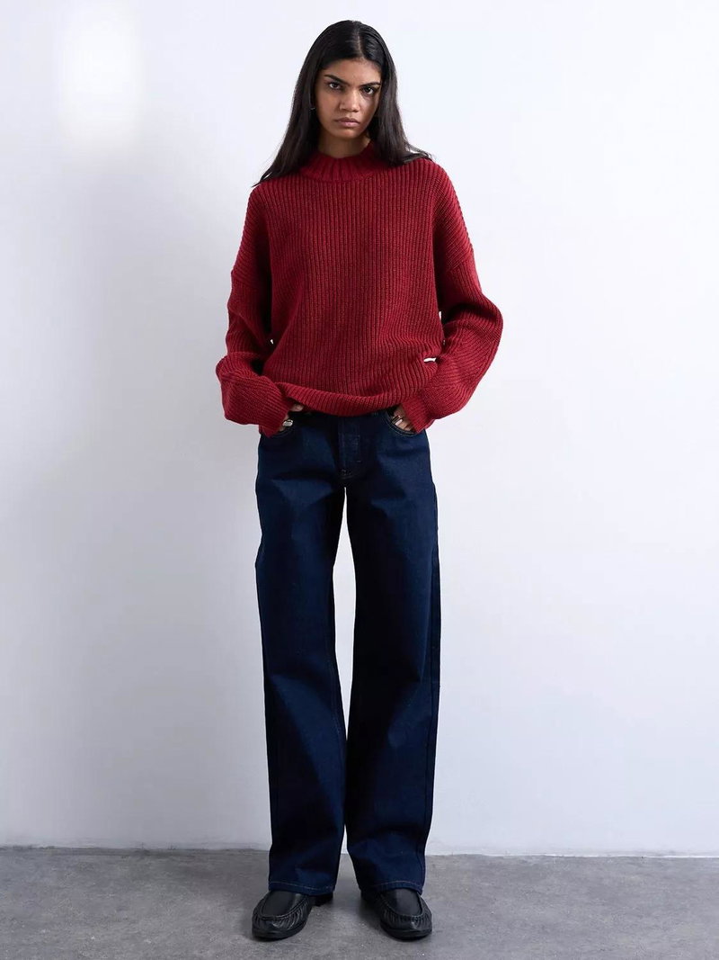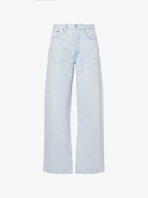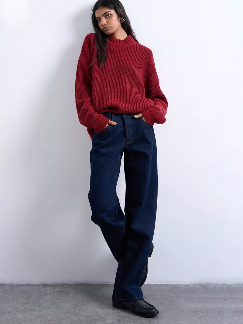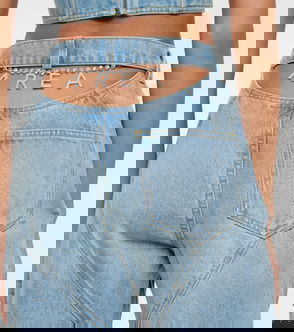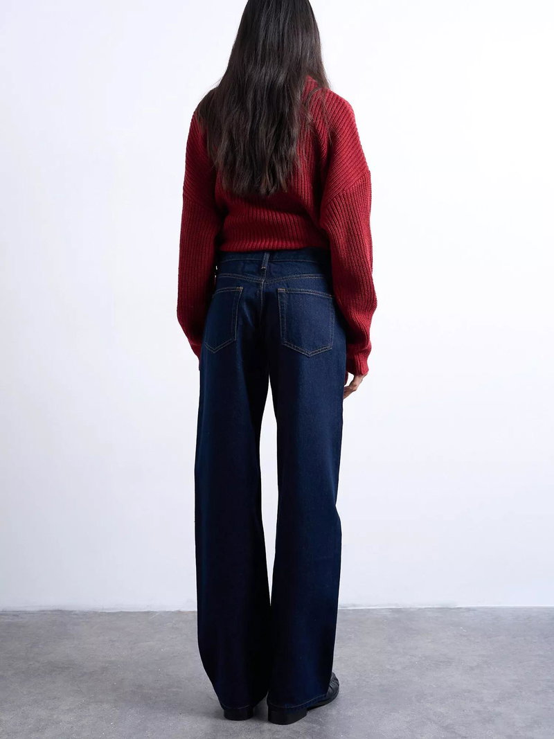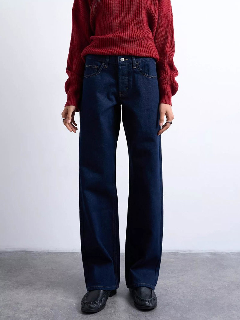 Exaggerated wide leg jeans from Topshop. Sculpted from denim featuring a low rise and a button fastening, they fall to a regular length.