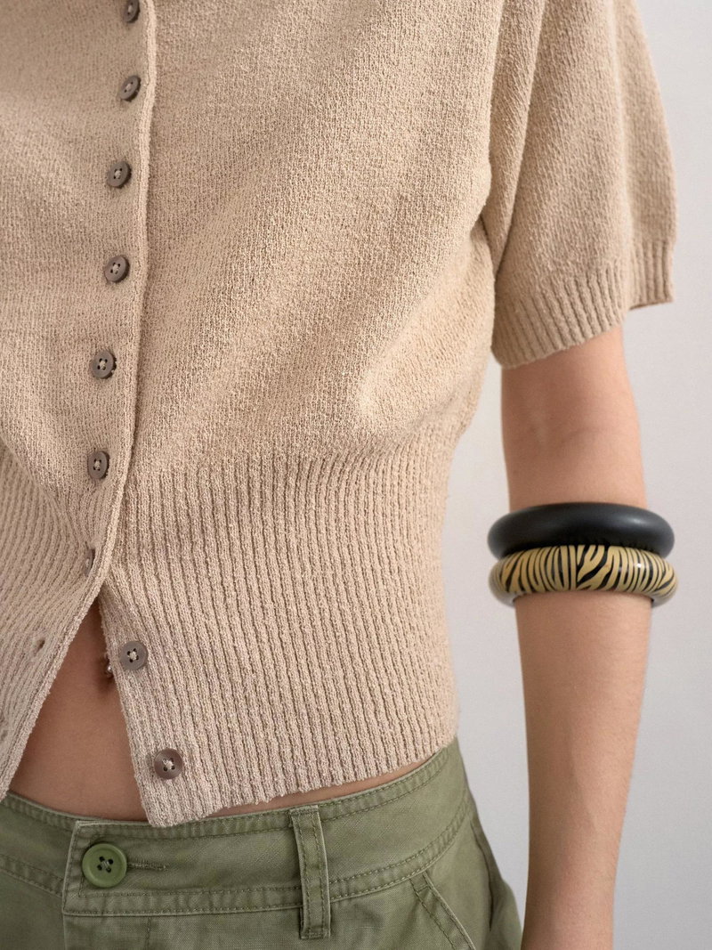 This button-front knit keeps things easy. Perfect for your daily plans, its fitted hem and polo collar neck add a sharp touch. The short sleeves offer comfort and movement wherever your day takes you.