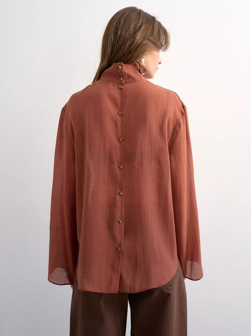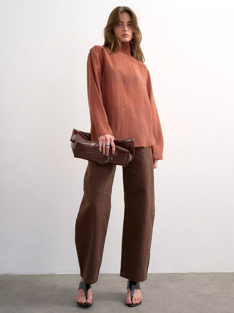 A regular-length shirt by Topshop, made from lightweight lyocell. The funnel neck and long sleeves frame you smartly, while the plain design means it goes with everything. A wear-everywhere essential.