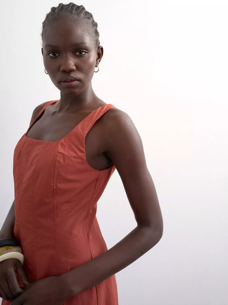 A midi dress by Topshop. With a flared silhouette and square neck, it's made from cotton and keeps you comfortable and ready for whatever your day brings.