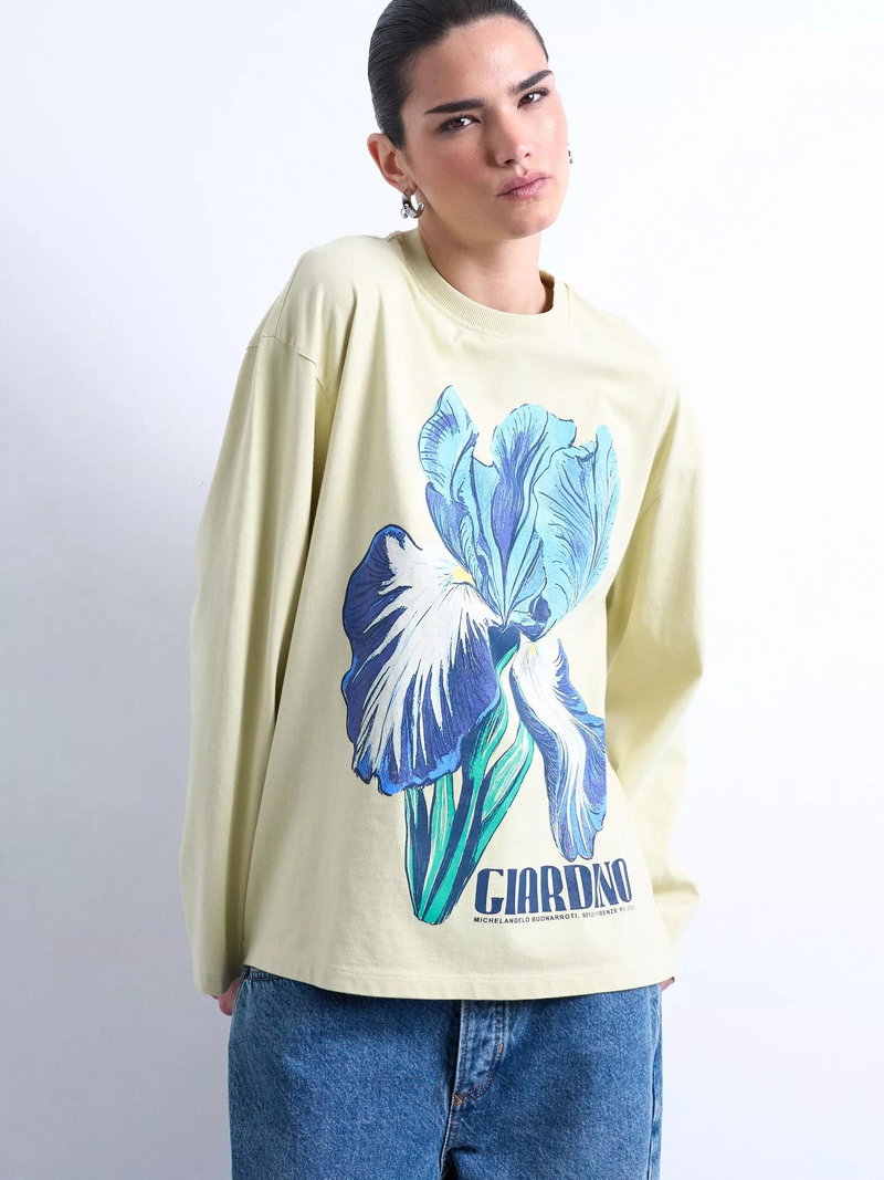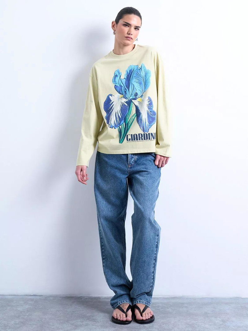An everyday skater T-shirt by Topshop, crafted from soft cotton. Featuring a crew neck and long sleeves, it makes for a stand out addition to your collection with its graphic.