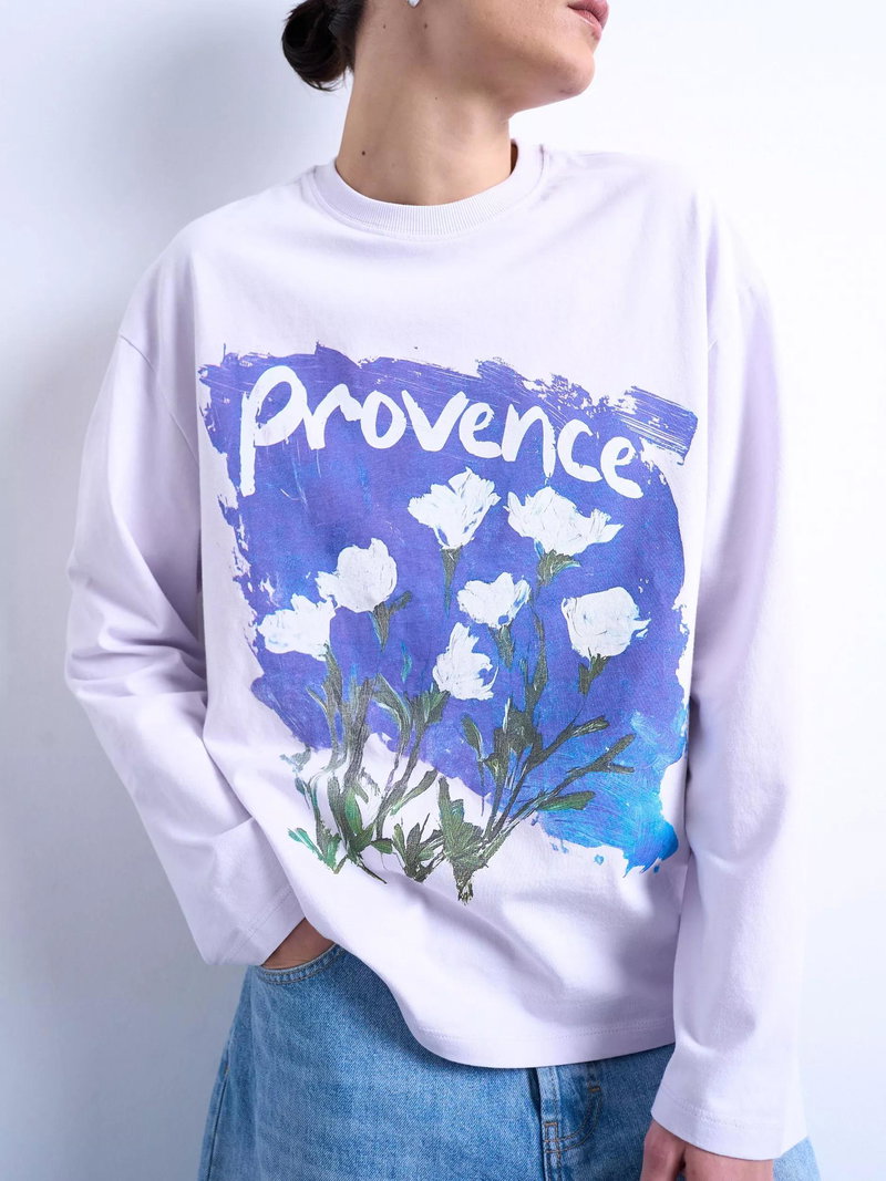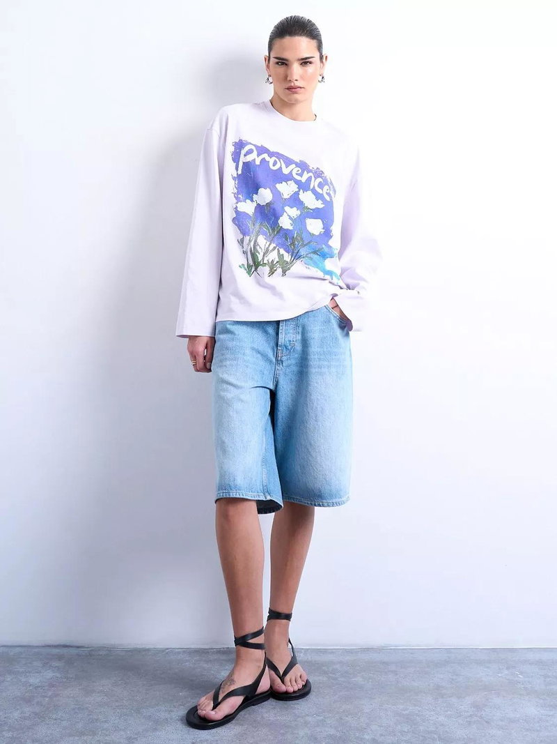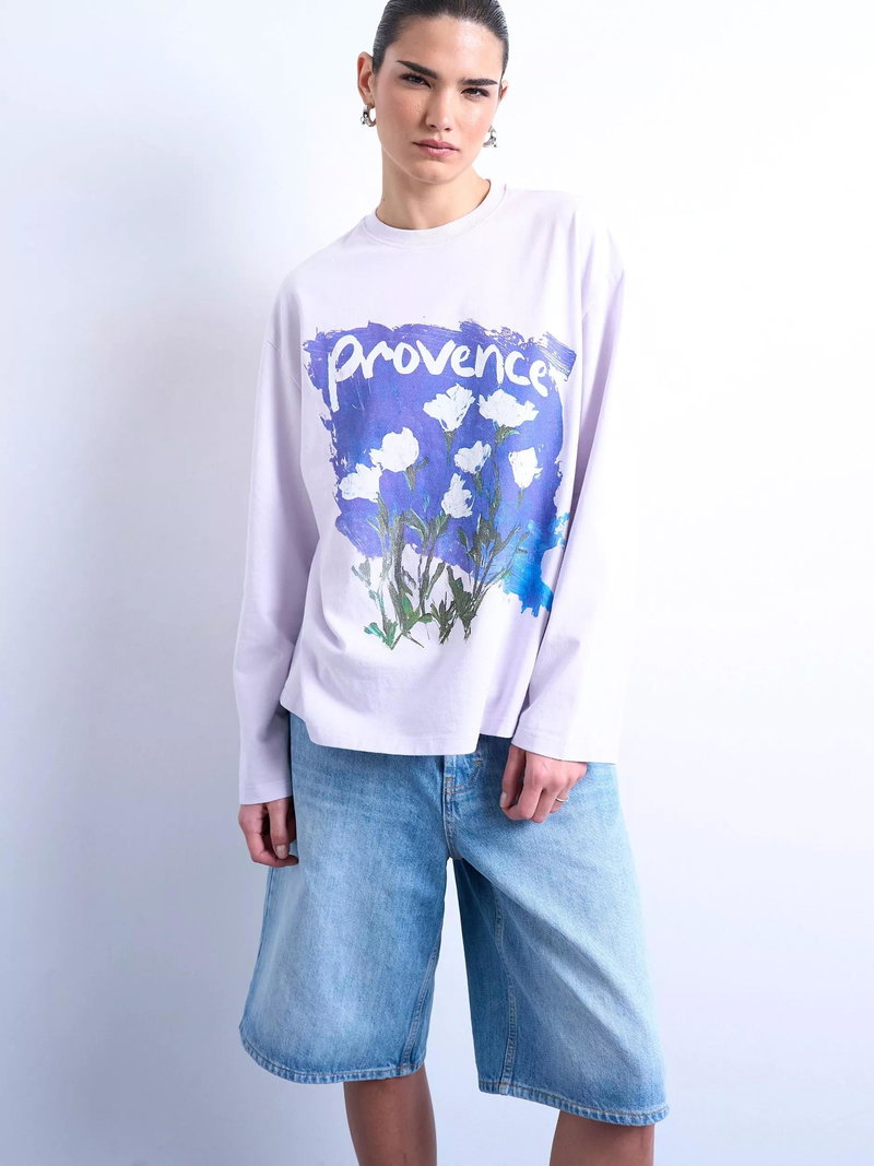 A graphic skater tee by Topshop, made from soft and breathable cotton. Featuring a crew neck and long sleeves, it's boxy fit is stamped with a provence graphic. Pair with denim or layer up.