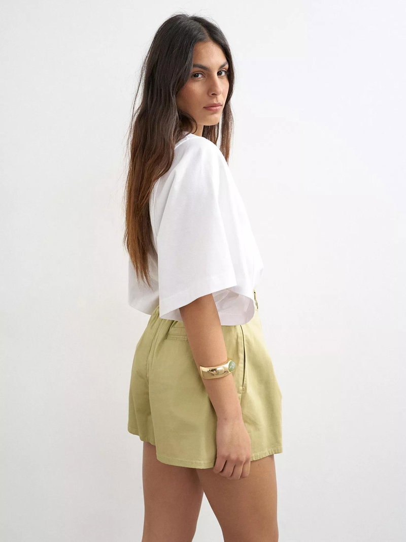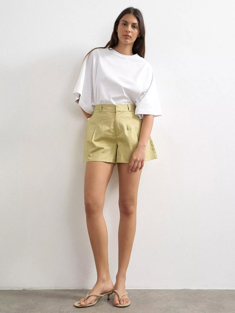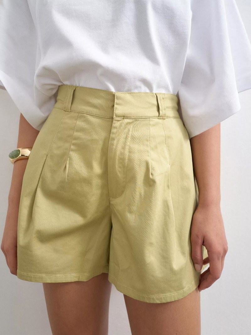 A high-rise pair of shorts crafted from pure cotton, offering breathable comfort and a crisp look for warmer days. A regular cut keeps it sharp without fuss for easy going summer dressing.