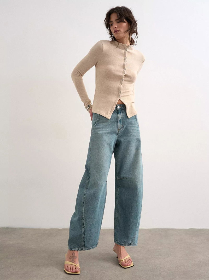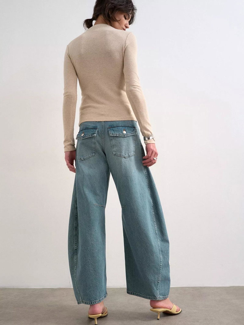 Shaped with a high rise and horseshoe cut for comfort and style, these jeans by Topshop comes in a classic denim finish, adding a smart twist to any look.