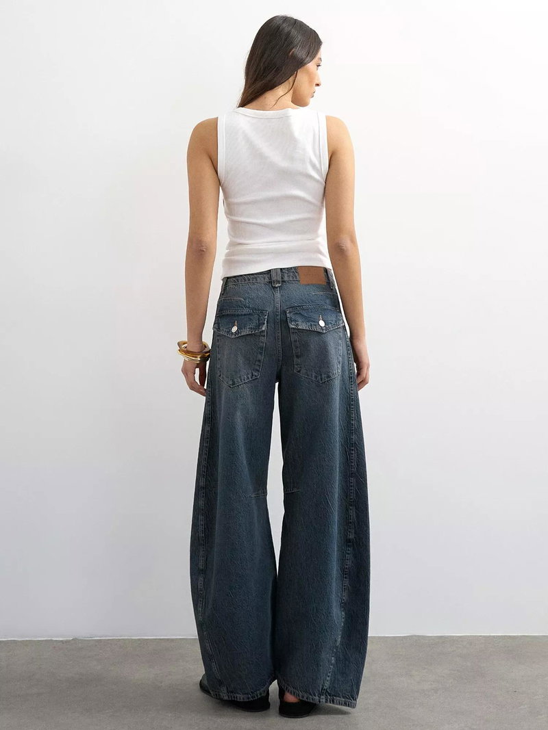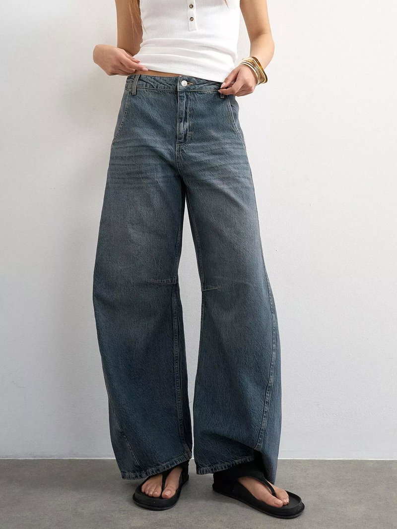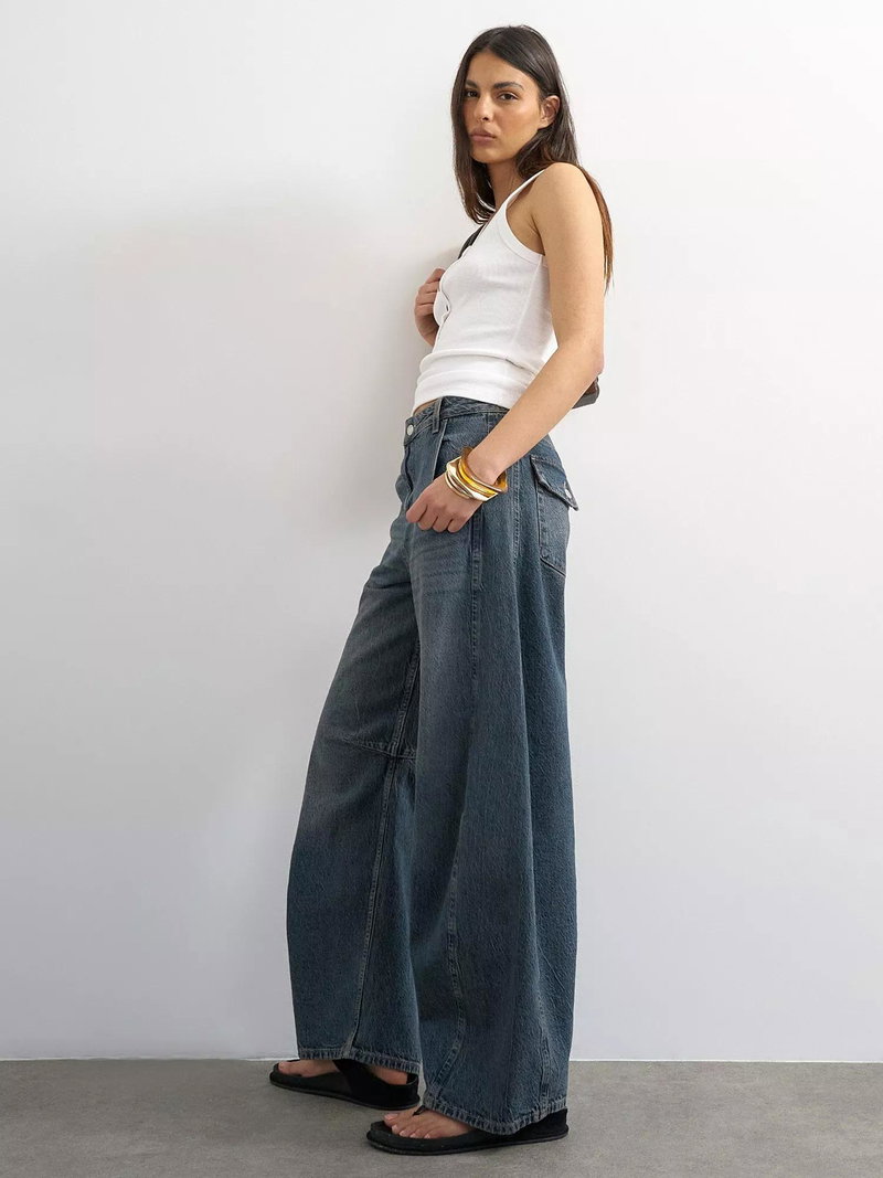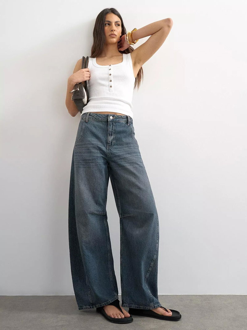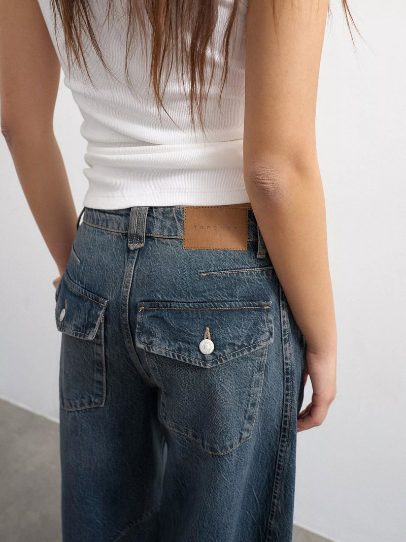 A pair of horseshoe-shaped jeans from Topshop, made to add fresh energy to your look. Featuring a high rise and a button fastening, they are made from pure cotton denim and fall to longer-length hems.