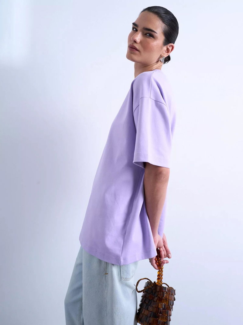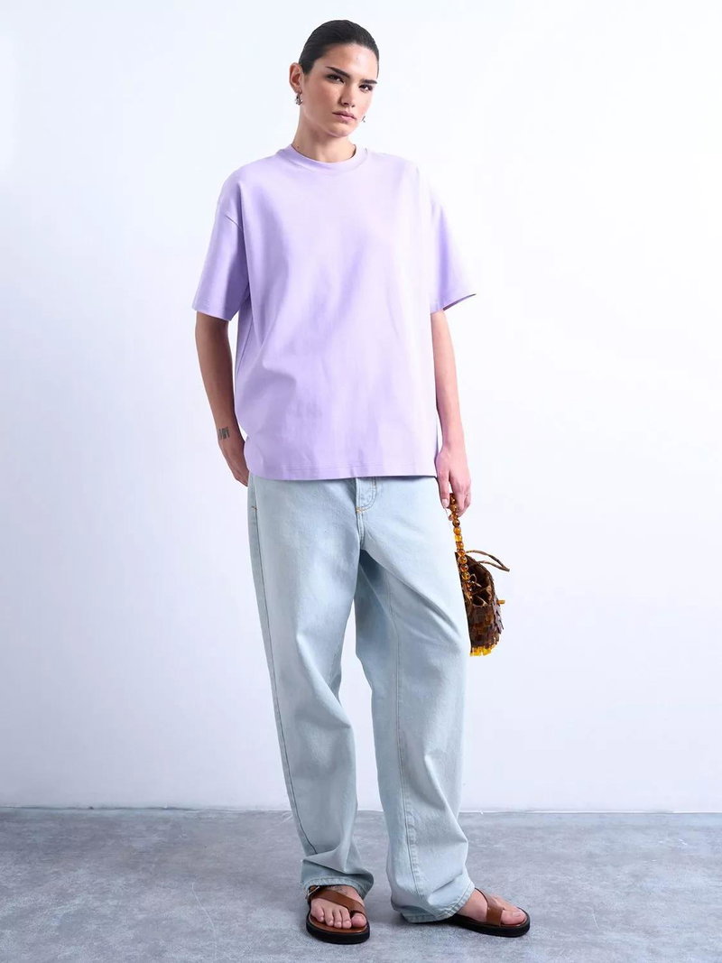 An interlock boxy-fit T-shirt from Topshop, made from a soft cotton blend. With a crew neck and short sleeves, the plain design means it goes with everything. An essential you'll reach for daily.