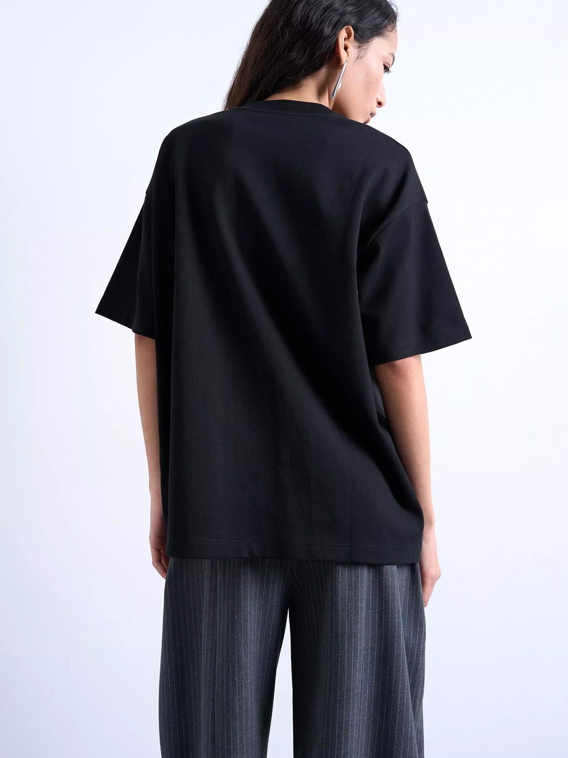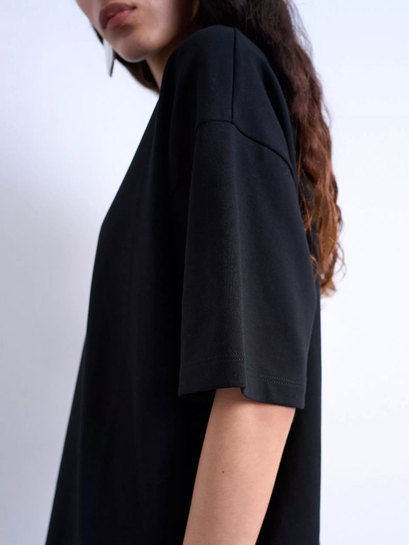 Cotton Rich Stretch Interlock Long Line Short Sleeve T-shirt In Black