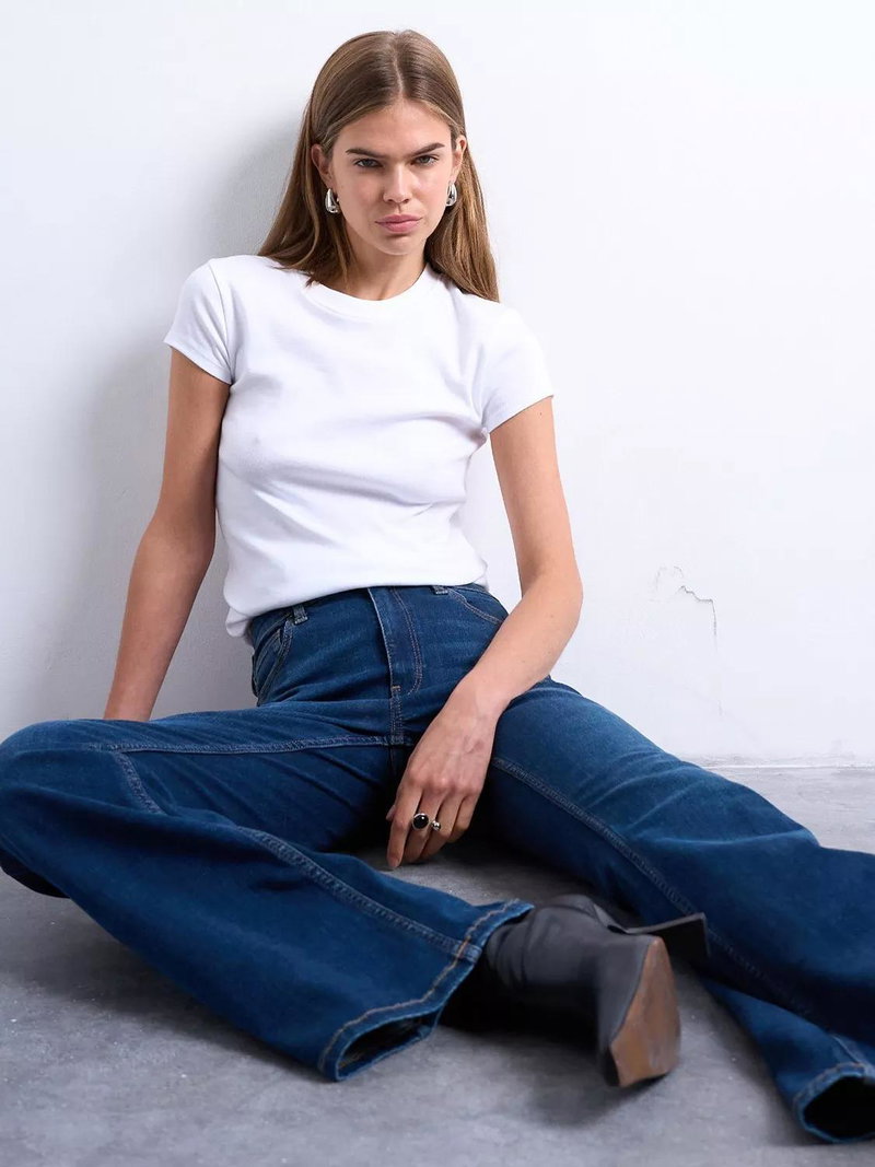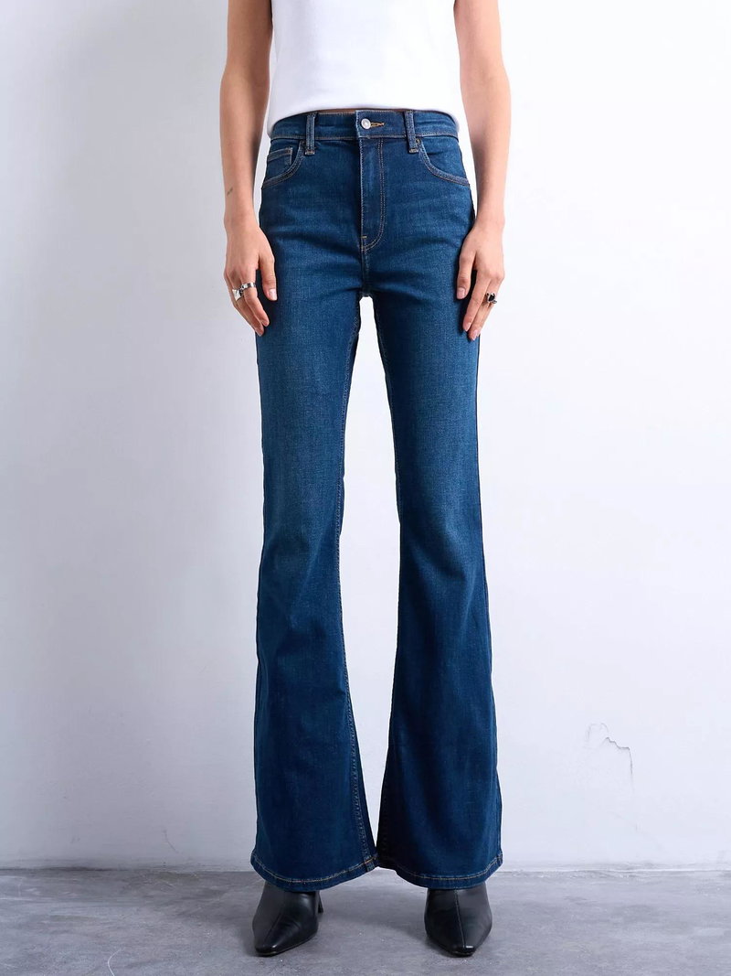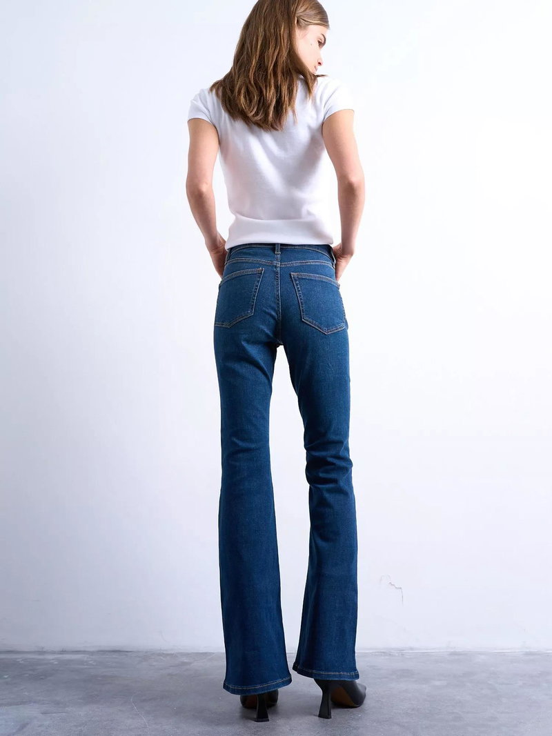 A pair with plenty of flair, this regular-length style from Topshop is made in soft denim with a high rise and a classic button and zip fly.