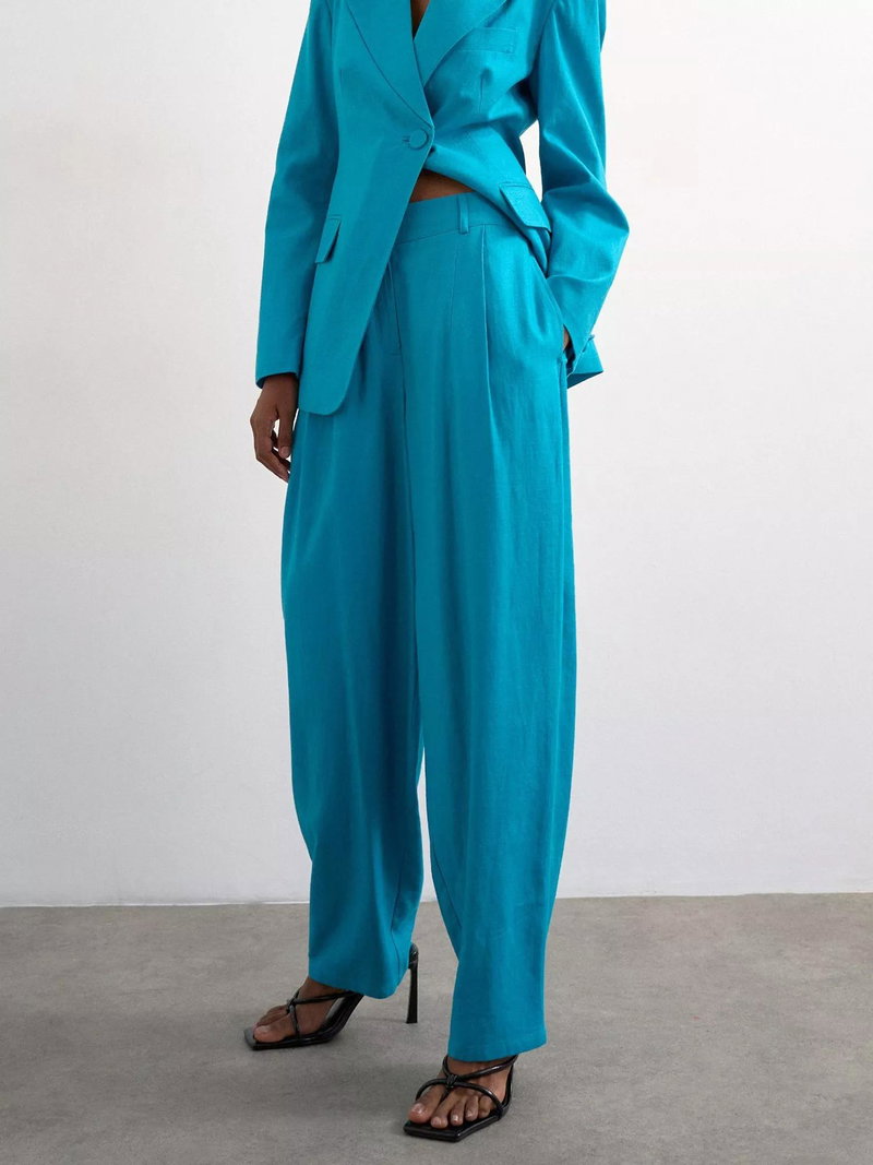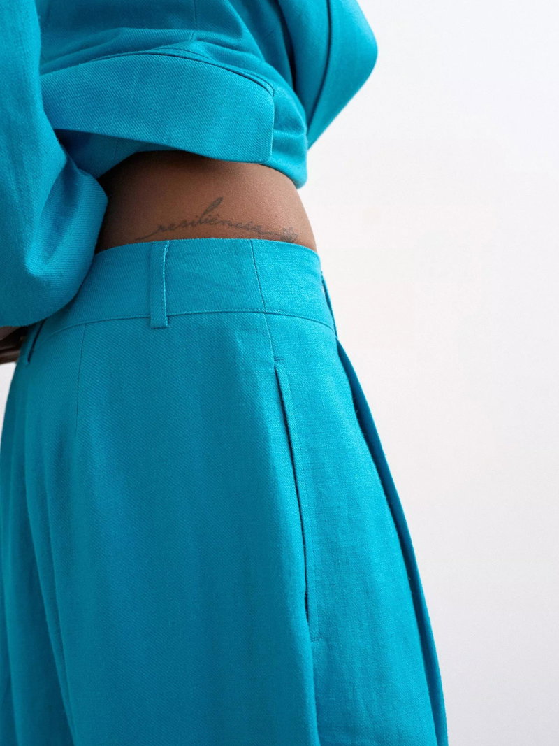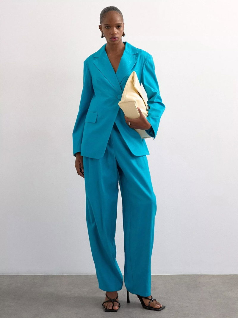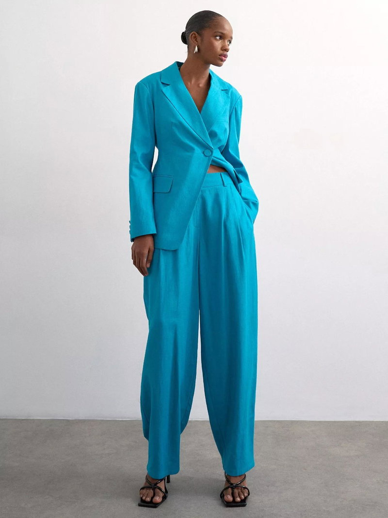 A masterclass in proportion, opt for this pair of flared trousers by Topshop made in a light linen blended fabric. They feature a mid rise with a zip fly and a regular length.