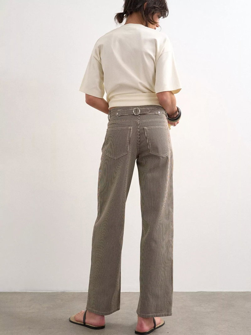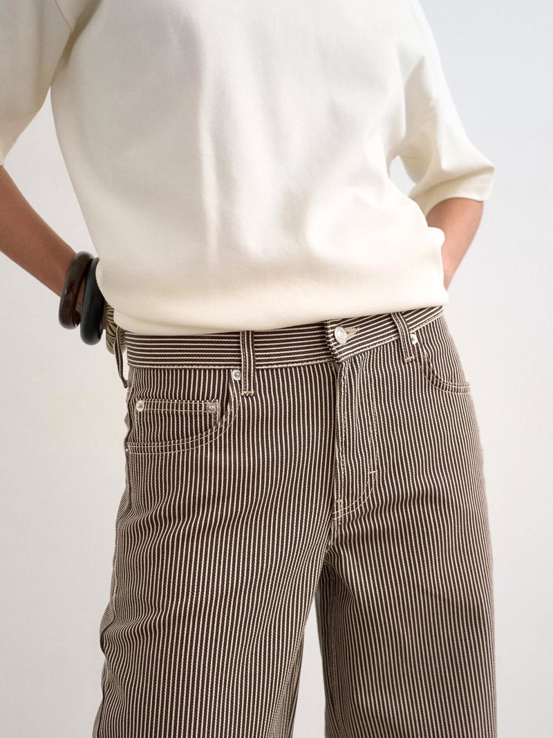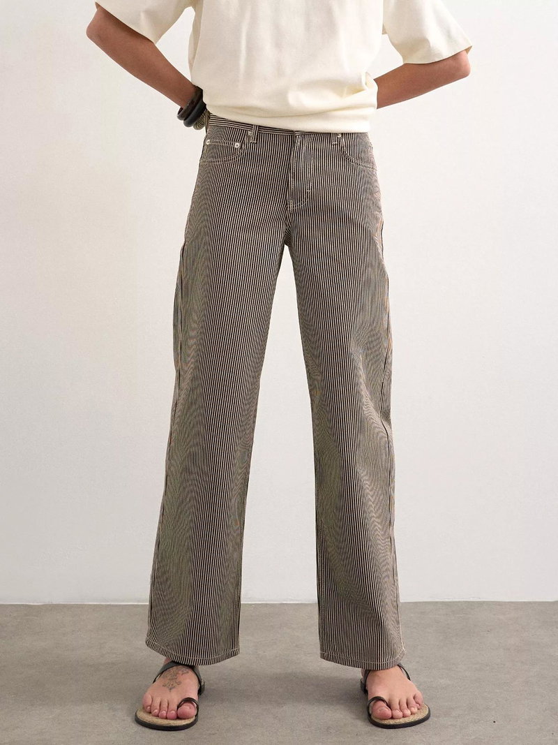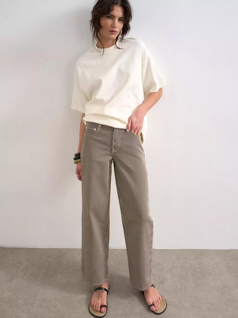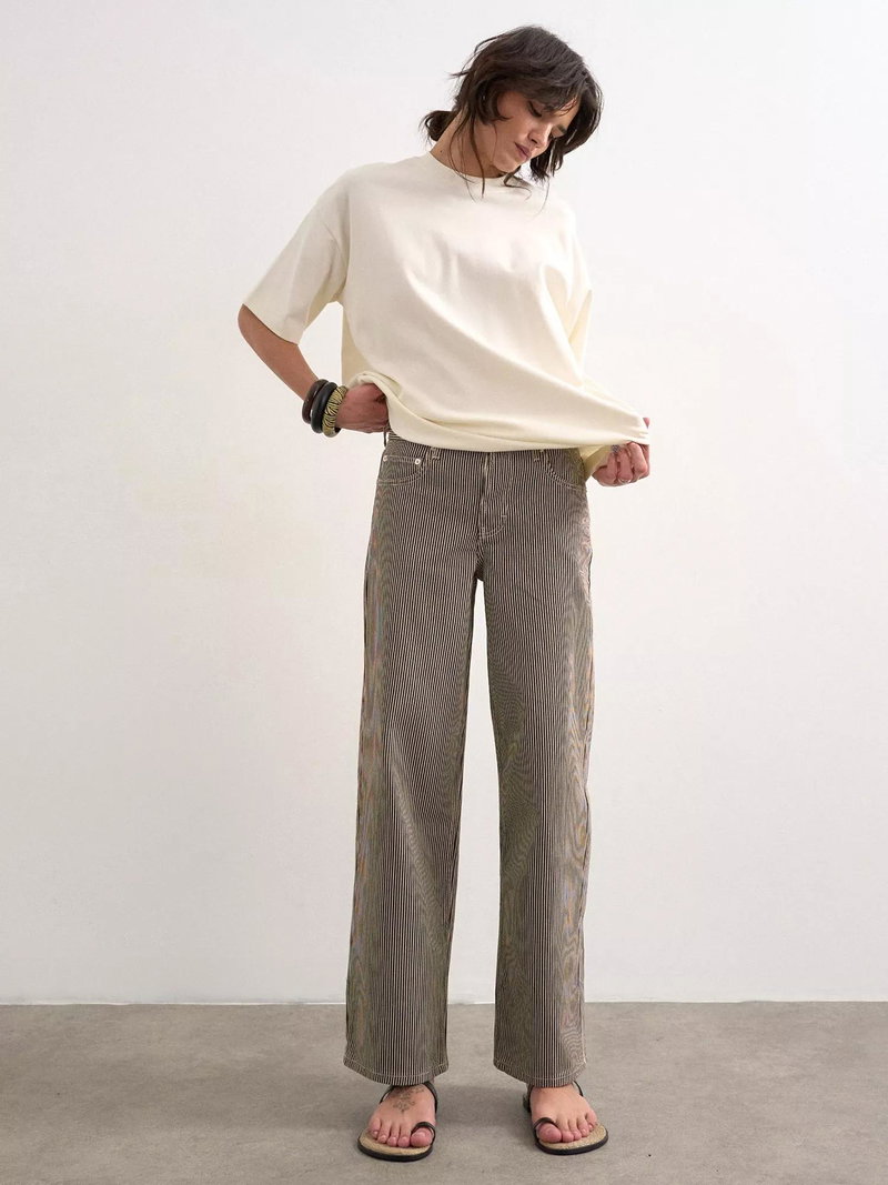 A pair of pinstripe relaxed-leg jeans by Topshop. Made in denim with an on-trend low rise and a button fastening, they fall to a regular length.