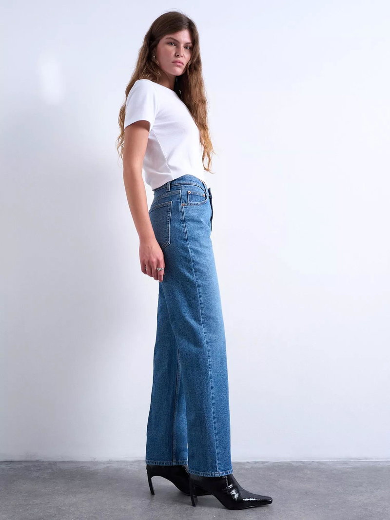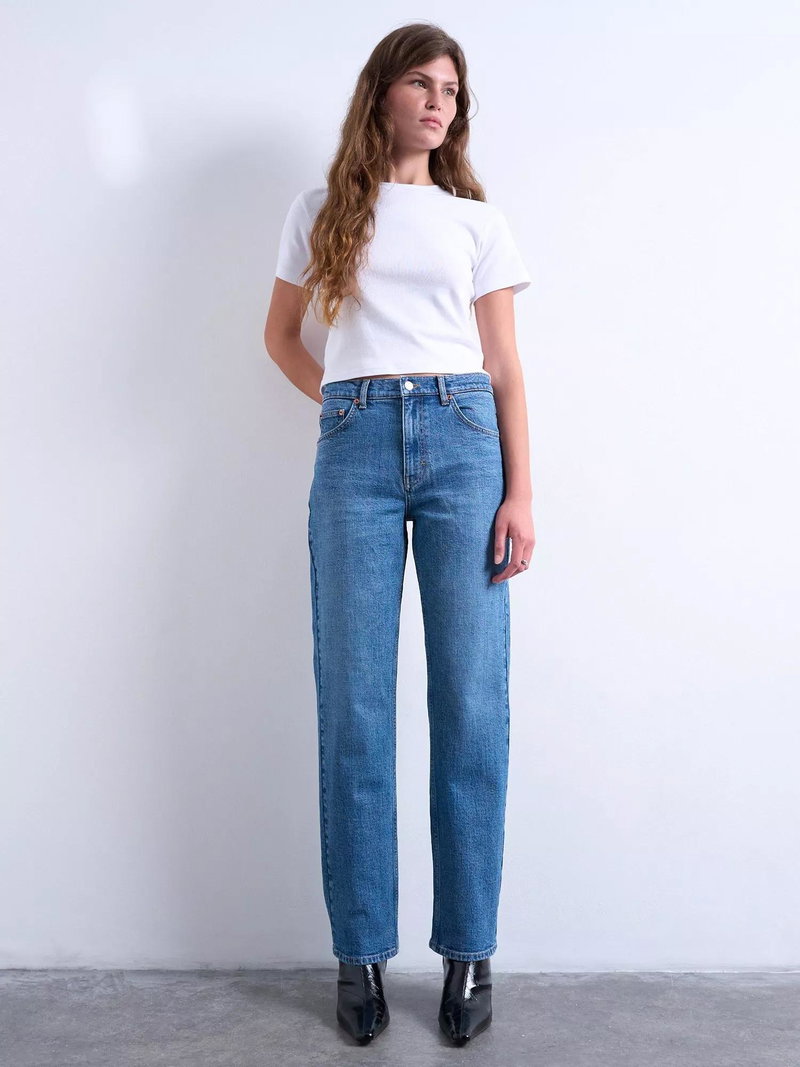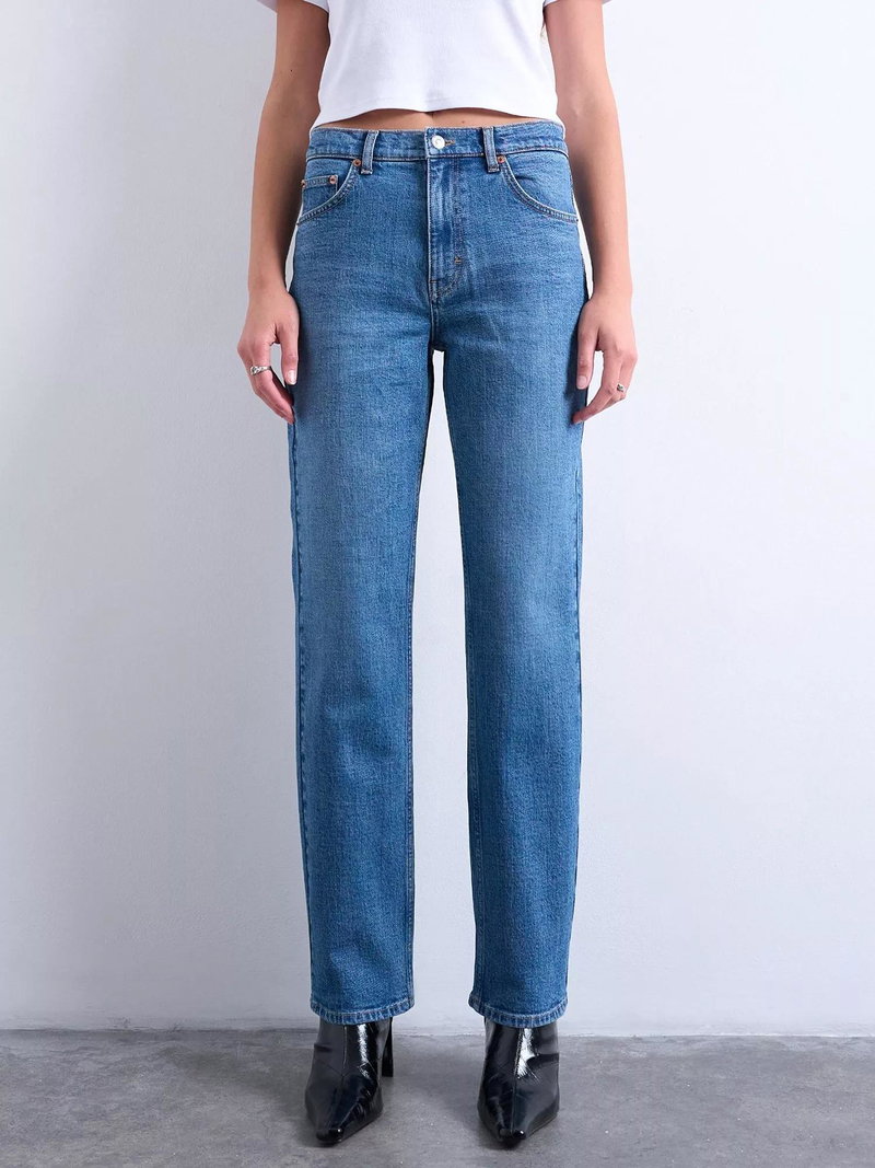 A pair of everyday straight-cut jeans from Topshop. Sculpted from denim featuring a mid rise and a button fastening, they fall to ankle-grazing hems.