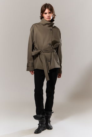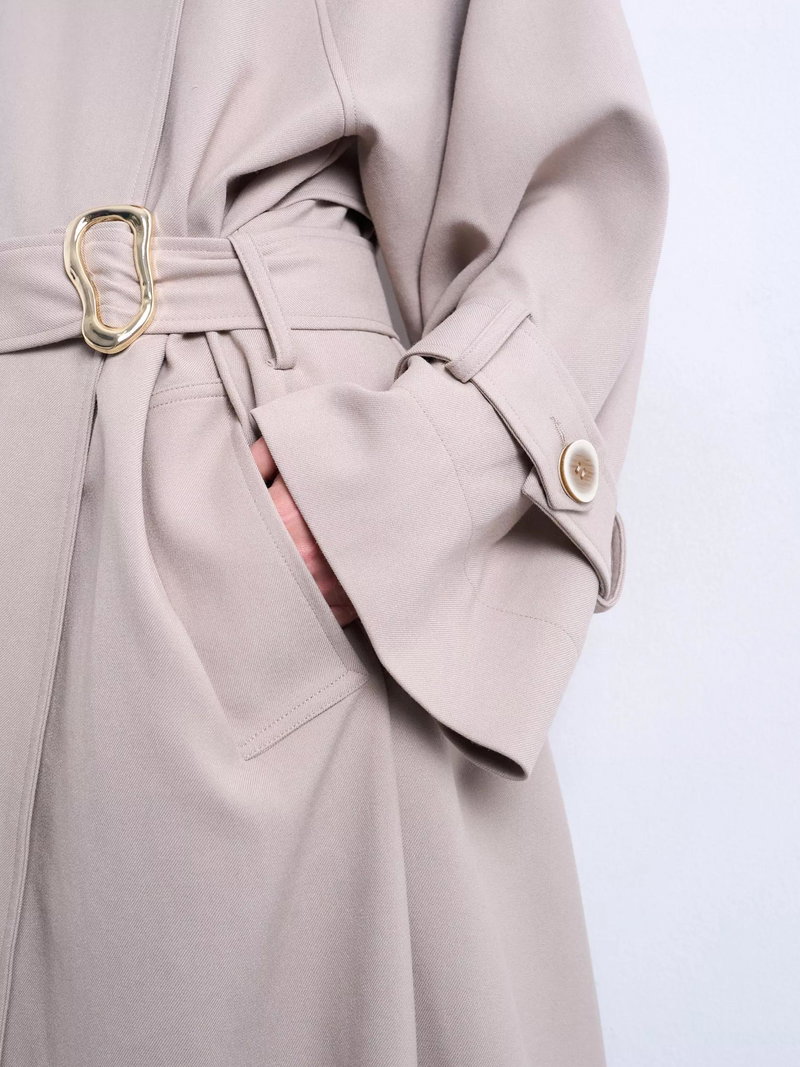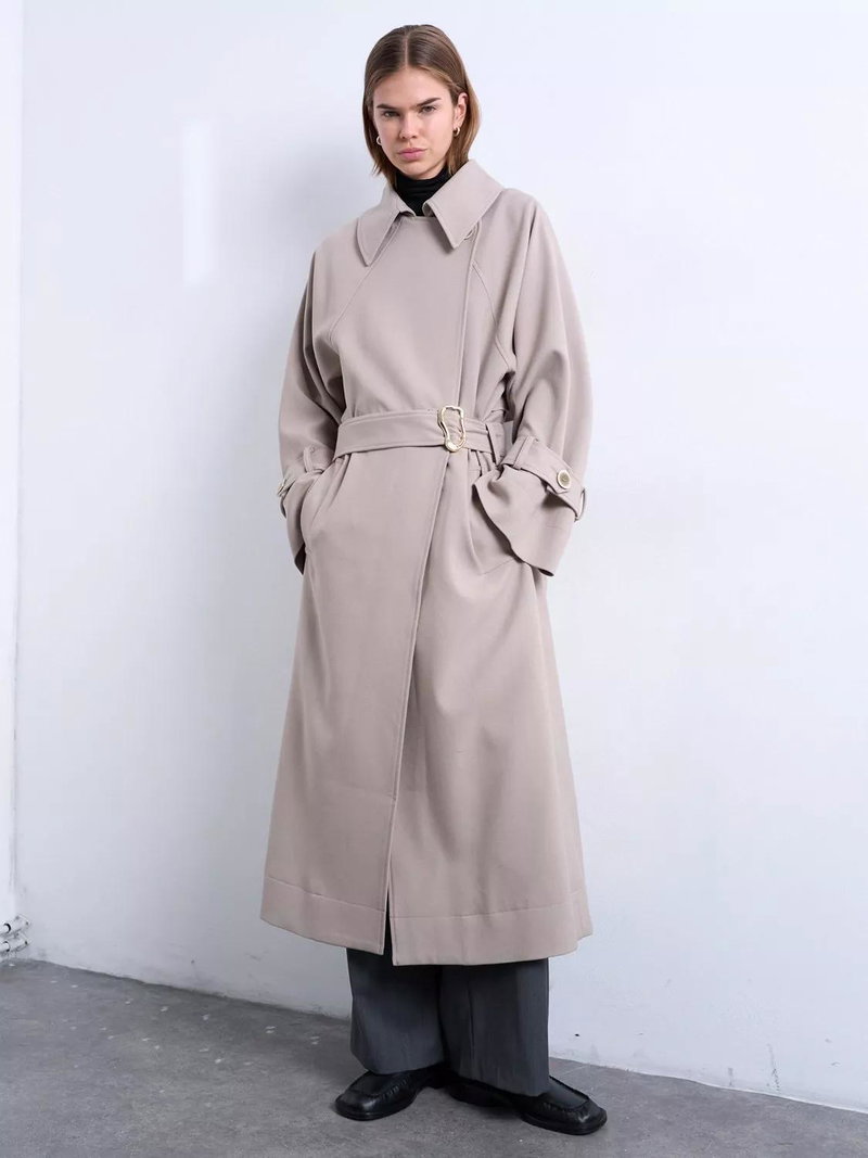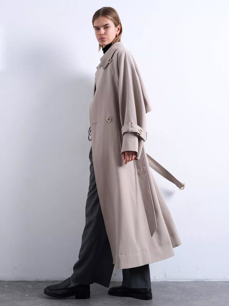 A longline trench by Topshop. Its oversized cut keeps you comfortable while the high neck and lined design help you stay warm on winter days. Thoughtful details make layering easy for any daytime plans.