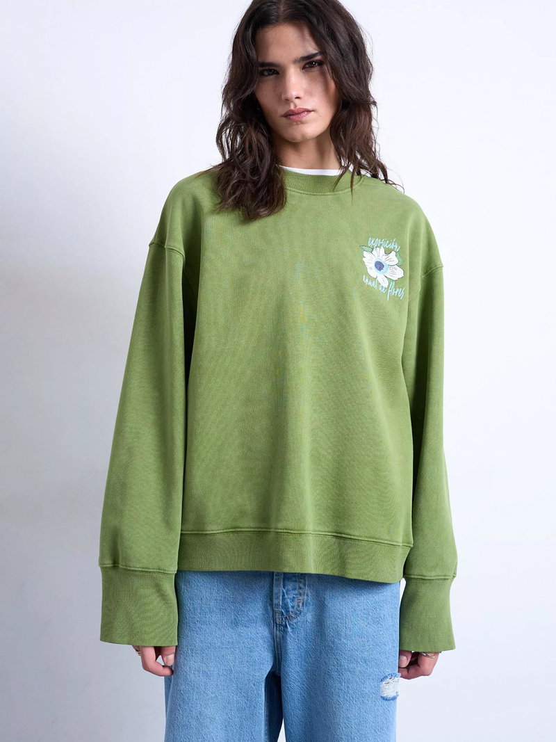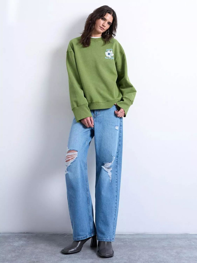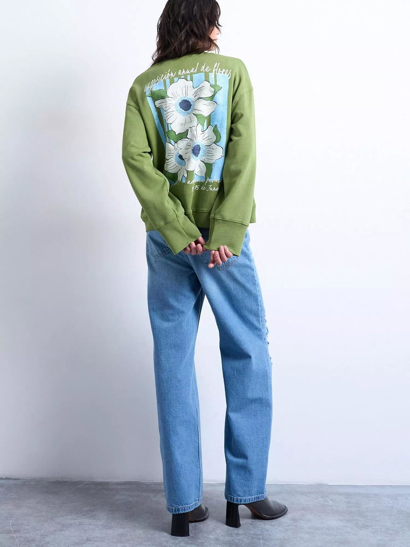 An oversized sweatshirt by Topshop, made from cotton for comfortable wear. With a crew neck and long sleeves, it's printed in florals. Warm enough for winter, easy enough for every day.