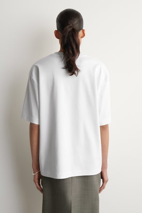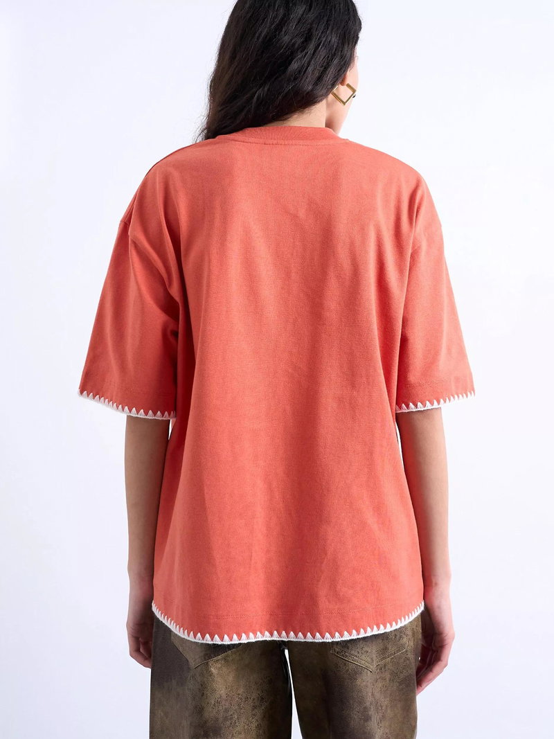 An oversized T-shirt by Topshop. Featuring a crew neck and short sleeves, it makes for a statement look with its graphic print. Light, breezy, and built for summer days.