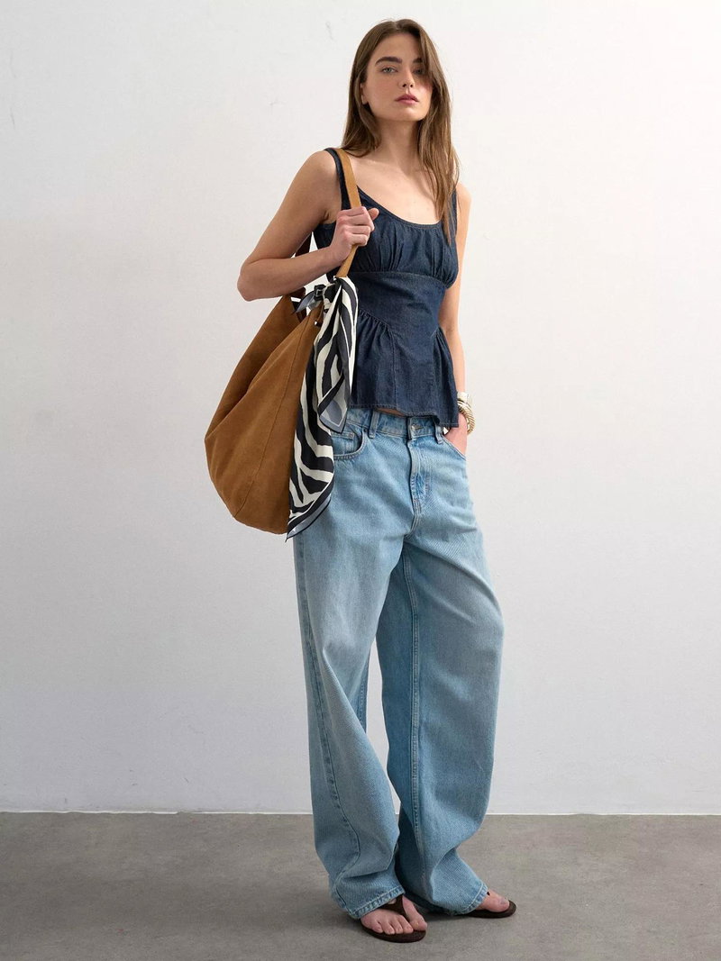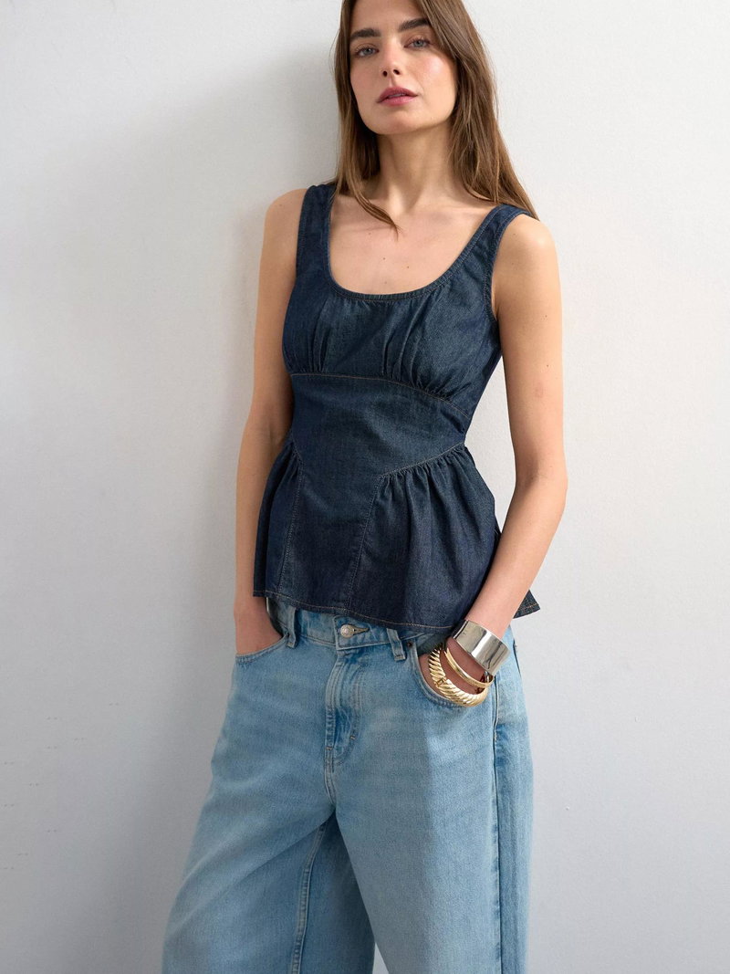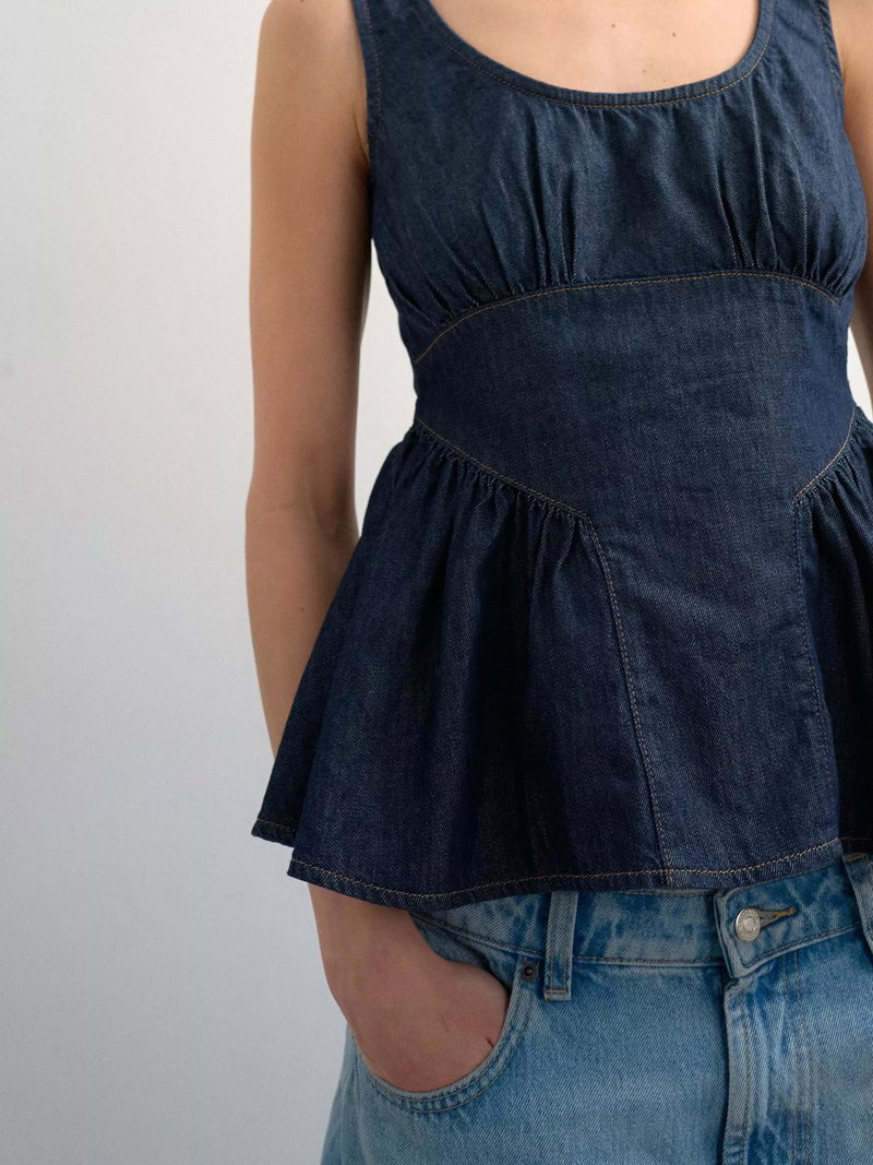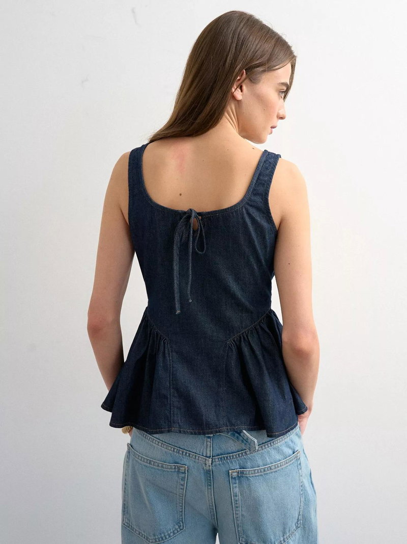 A sleeveless peplum denim top by Topshop, designed for comfort and versatility. The scoop neck and regular fit make it easy to pair with anything, keeping your style fresh for any summer day.