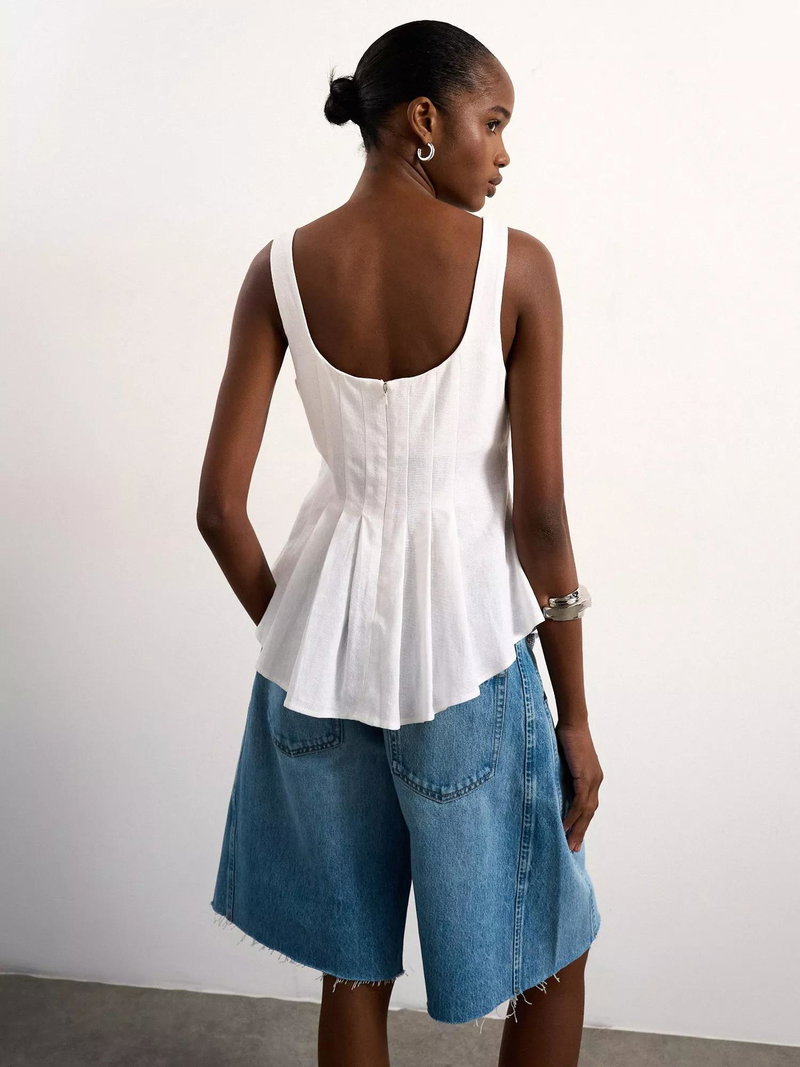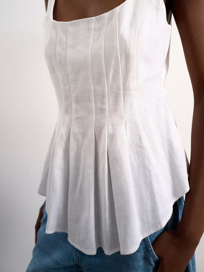 This top by Topshop is cool and breezy, blended from linen. Simply cut with a scoop neck, it's designed with pleats to keep its structure. One you'll reach for again and again.