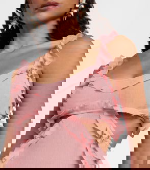 This top is crafted from lightweight woven fabric in a pink shade. It features a high neck, long sleeves and adjustable ruched sides. Complete with a zip fastening to the back, this style is cut to a regular fit.