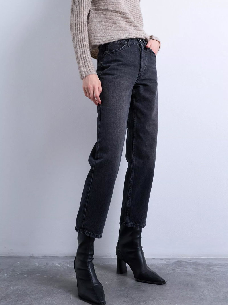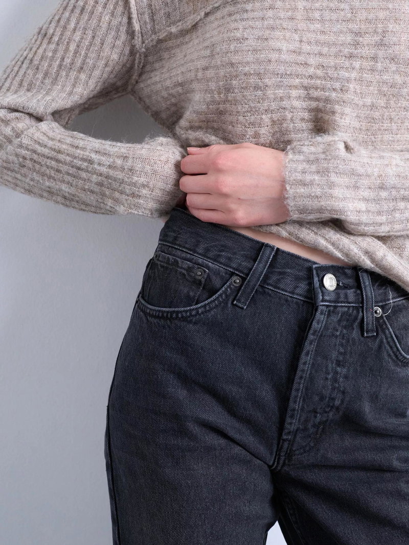 These cropped Runway jeans are cut with a mid-rise waist and a straight leg. Featuring belt loops, five functional pockets and a branded patch to the reverse, this style is crafted from non-stretch, mid-weight denim in a worn-in black wash.
