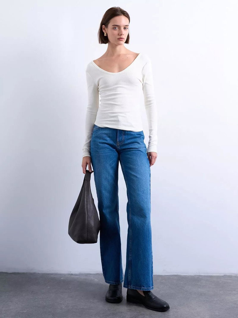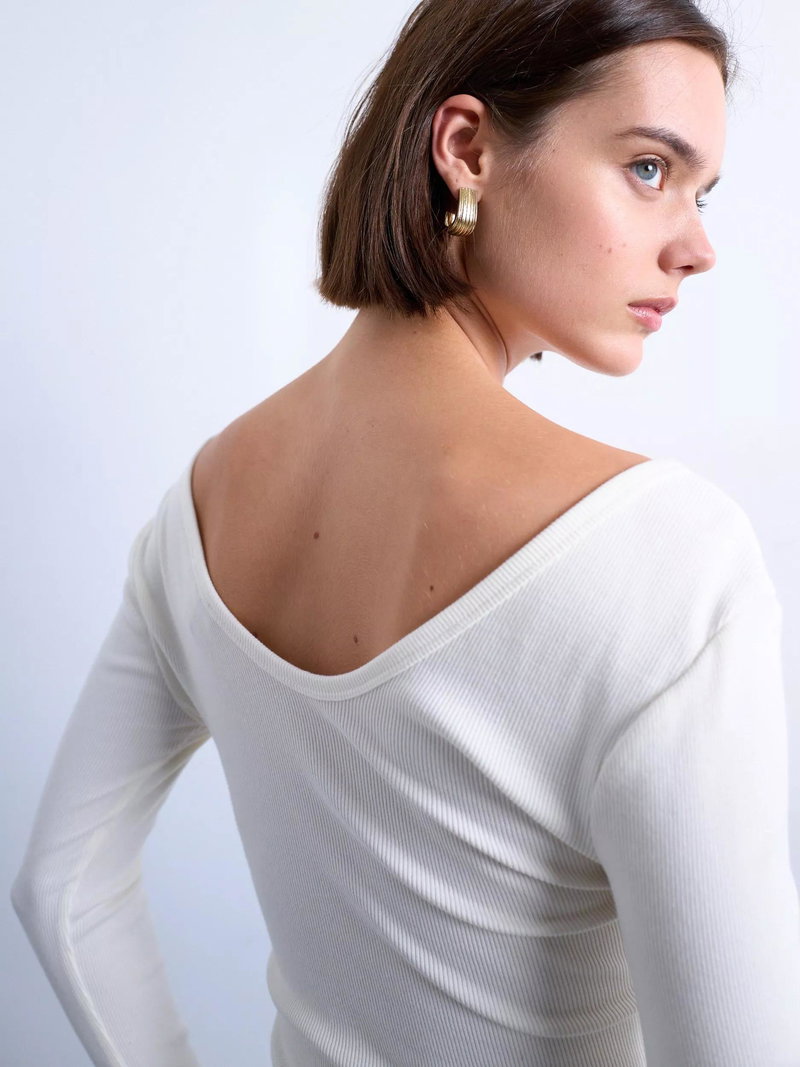 A T-shirt from Topshop, made from a comfortable cotton-rich fabric. Featuring a V-neck and long sleeves, the plain design means it goes with everything. A wear-everywhere essential.