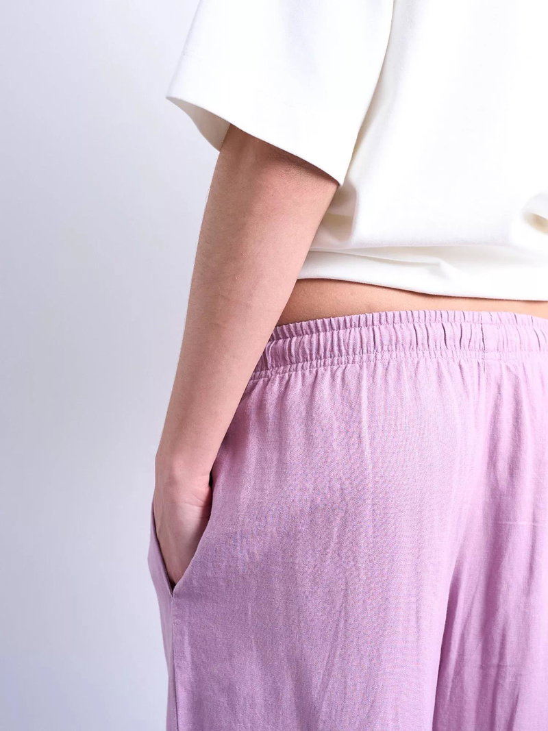 Made with at least 50% linen. Linen is made from the fibres of the flax plant. Flax is resilient and can grow in poor soil, using less water than cotton to produce.'