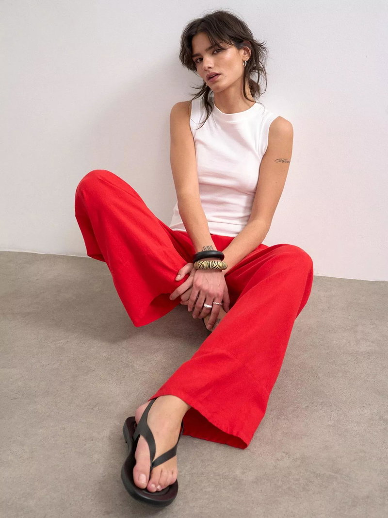 Step into your day with these straight leg trousers from Topshop. Cut from a comfortable linen blend, the mid-rise fit and adjustable drawstring let you move freely.