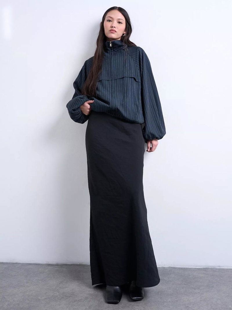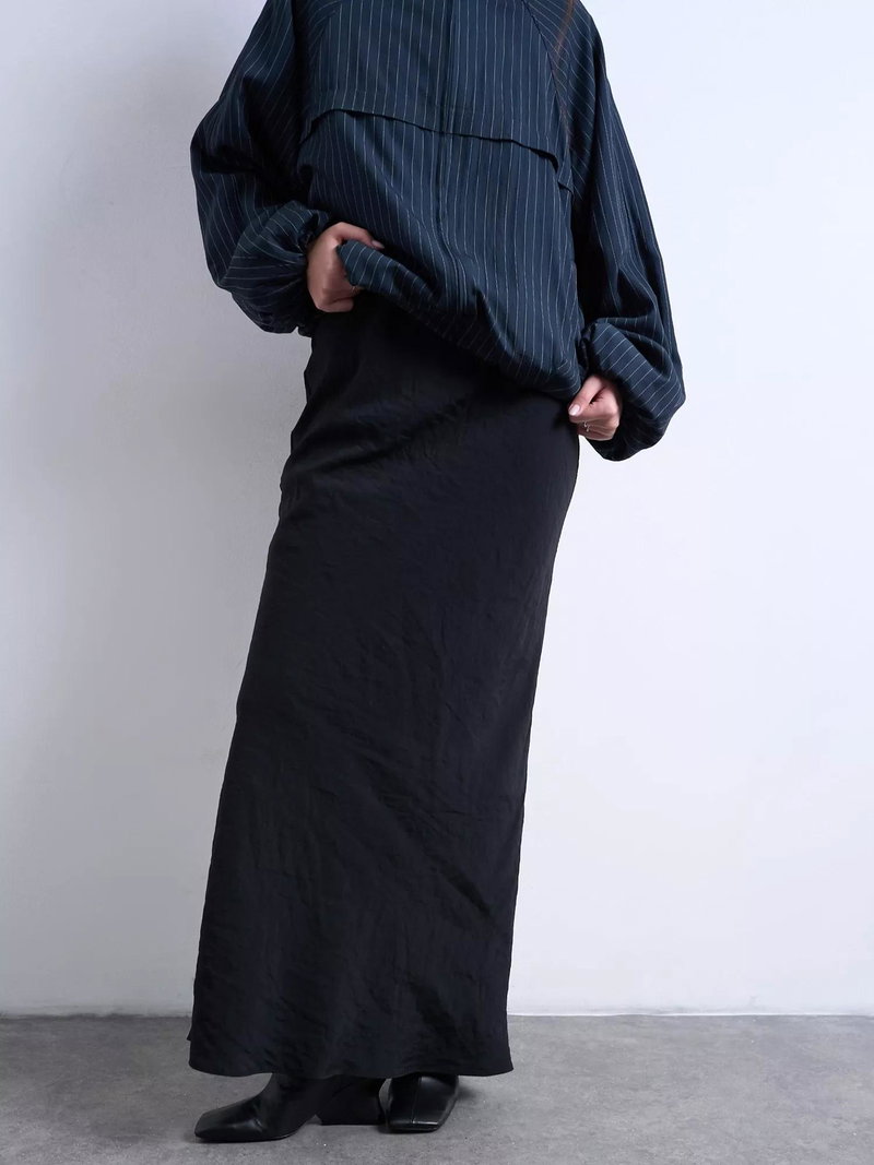 A straight-cut maxi skirt from Topshop. Soft cupro fabric keeps you comfortable and gives you easy movement, pairing with whatever you choose.