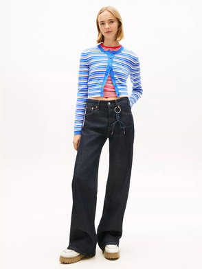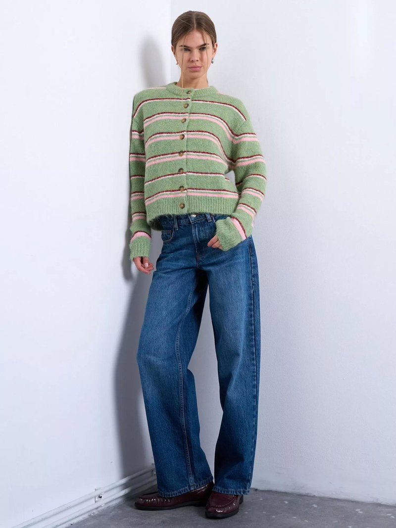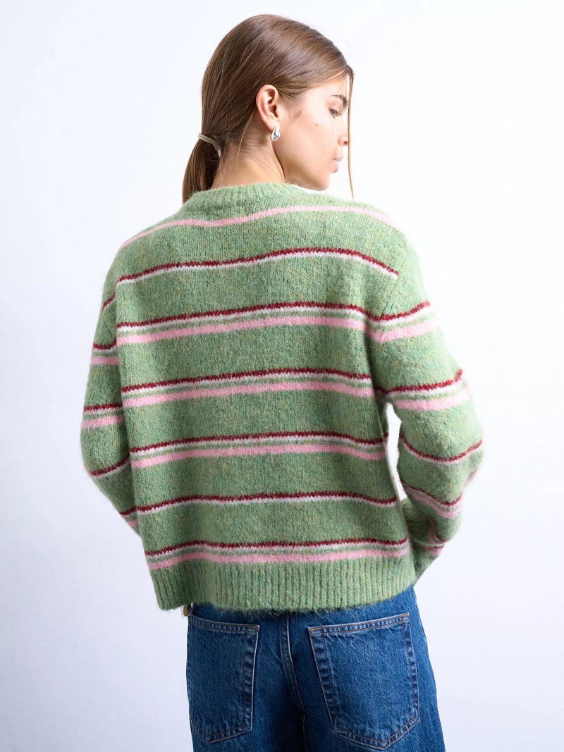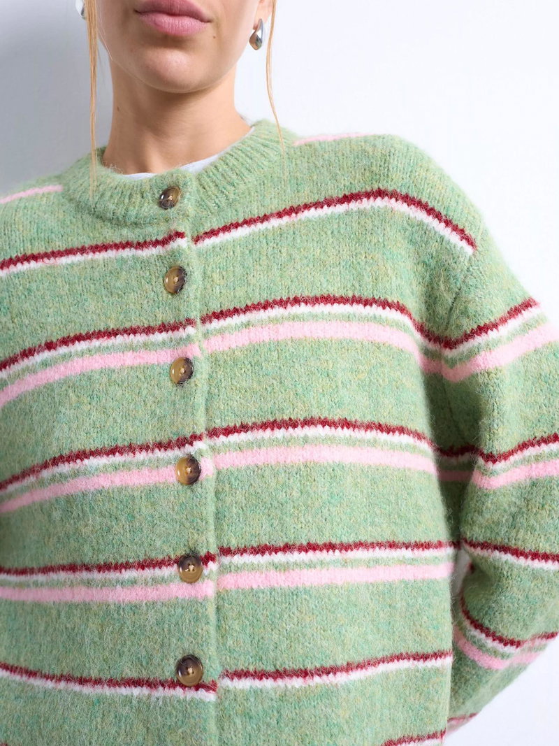 This striped crew neck cardigan brings lively energy to your look. Its regular fit and long sleeves keep you comfortable wherever your day takes you.