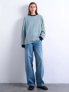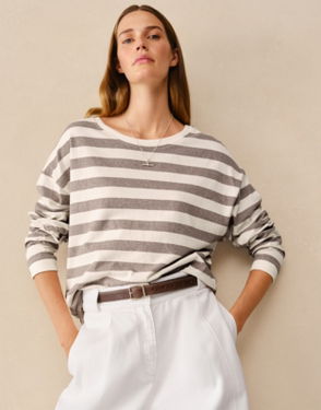 Stripe Long Sleeve Skater Top, Blue/Orange