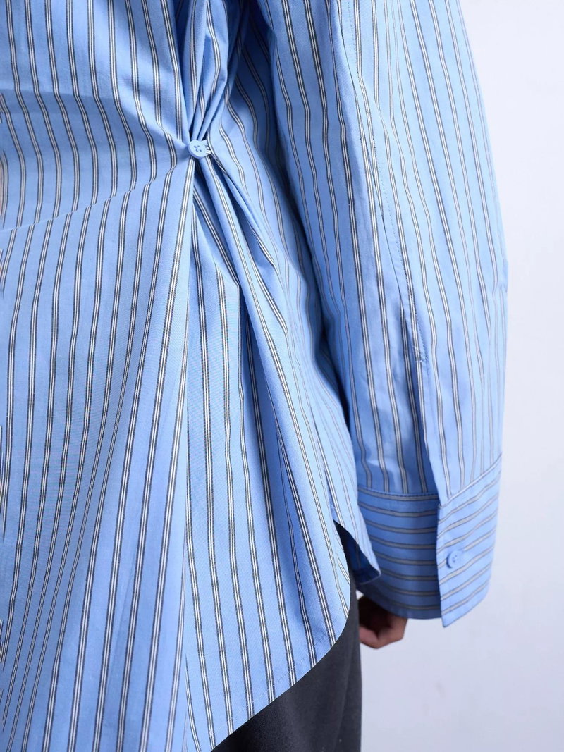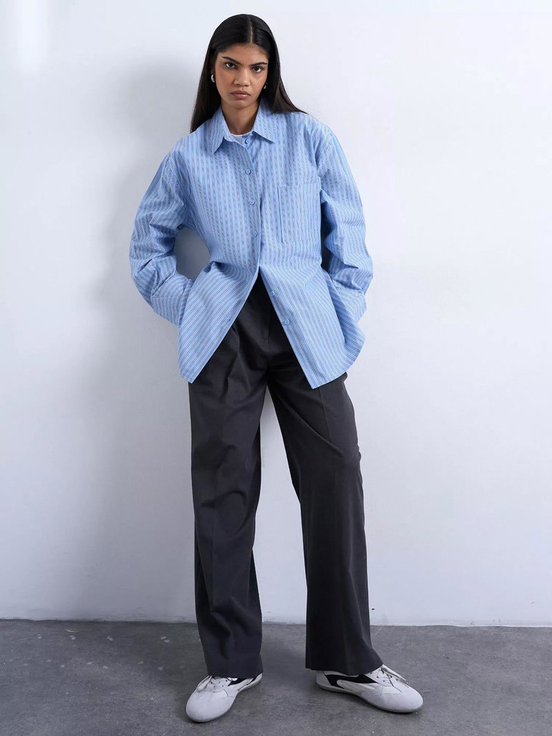 An oversized shirt from Topshop, made from soft and breathable cotton with buttons on the back to cinch the fit. With a button-up neckline and long sleeves, it's a wardrobe classic with neat striping. One you'll reach for again and again.