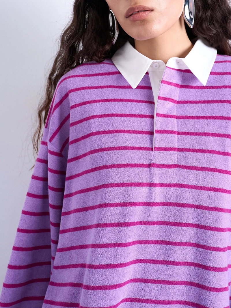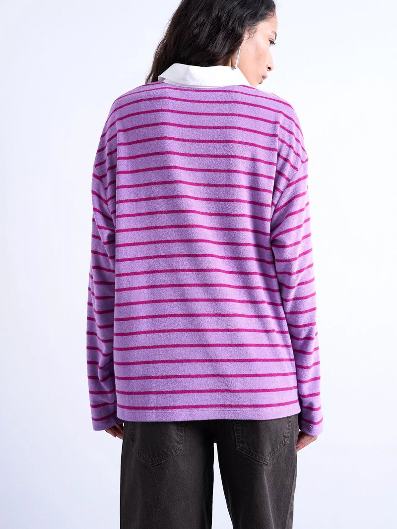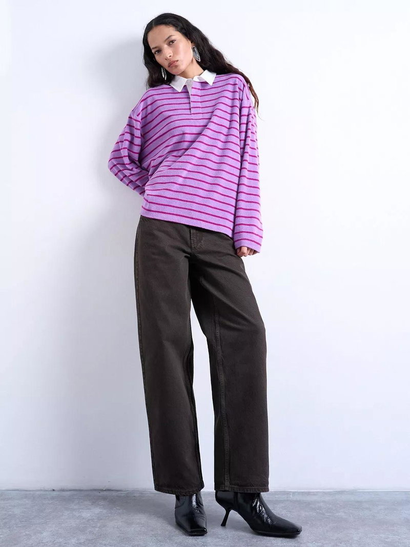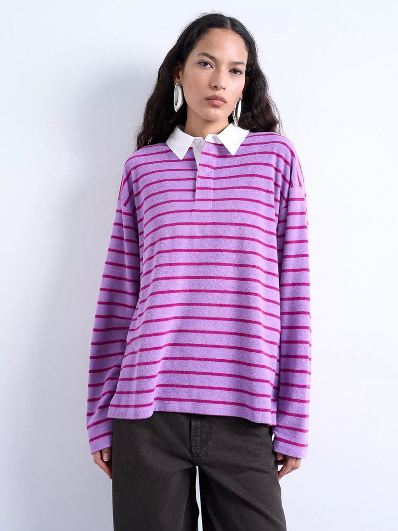 A towelling polo shirt from Topshop, made from a soft cotton blend. With a button-up neckline and long sleeves, it's patterned in stripes. One for your everyday lineup.