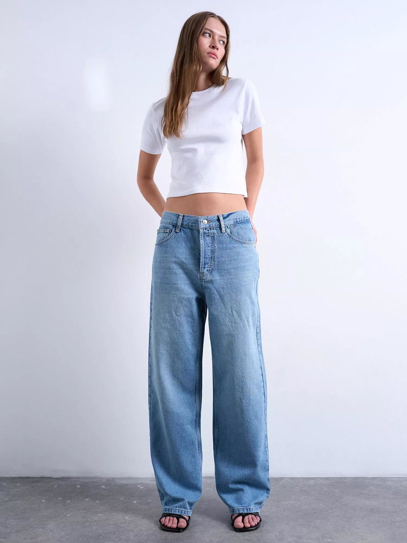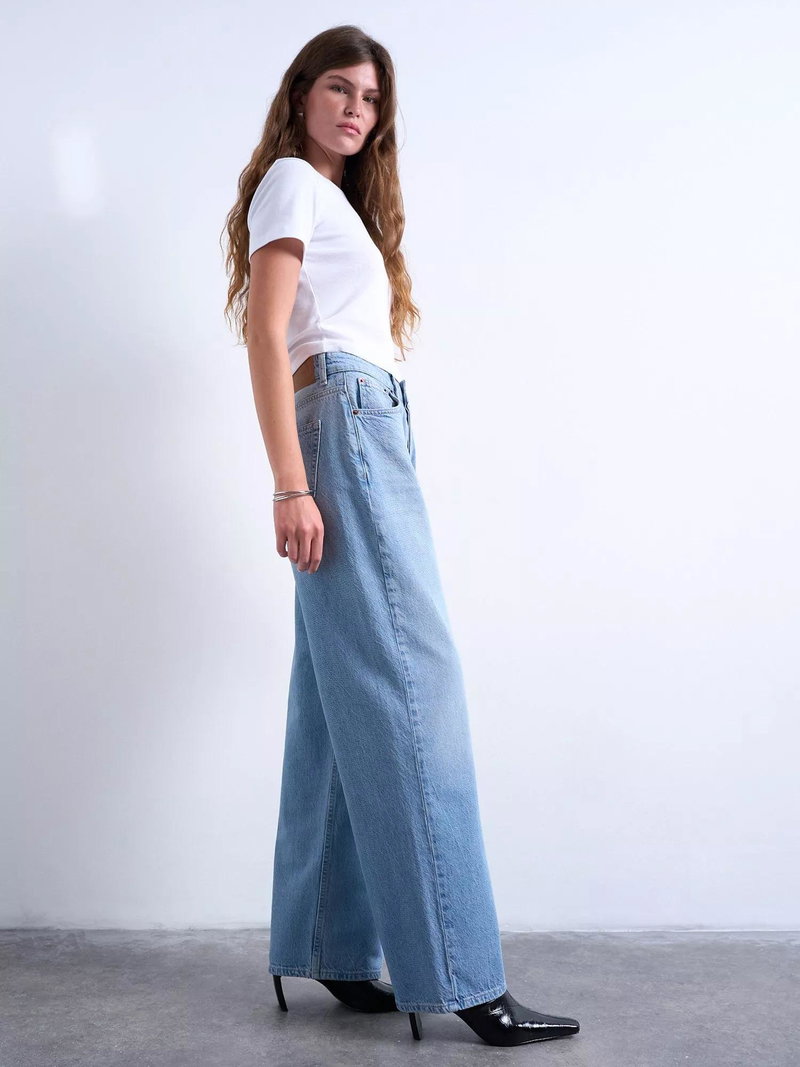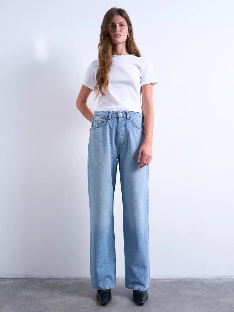 The Column jeans are cut with a mid-rise waist and straight cut leg that stacks at the ankle. Featuring belt loops, five pockets and a branded patch to the reverse, this style is finished in a light-blue wash.