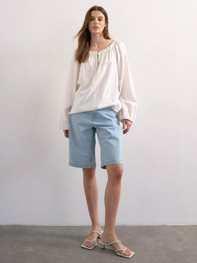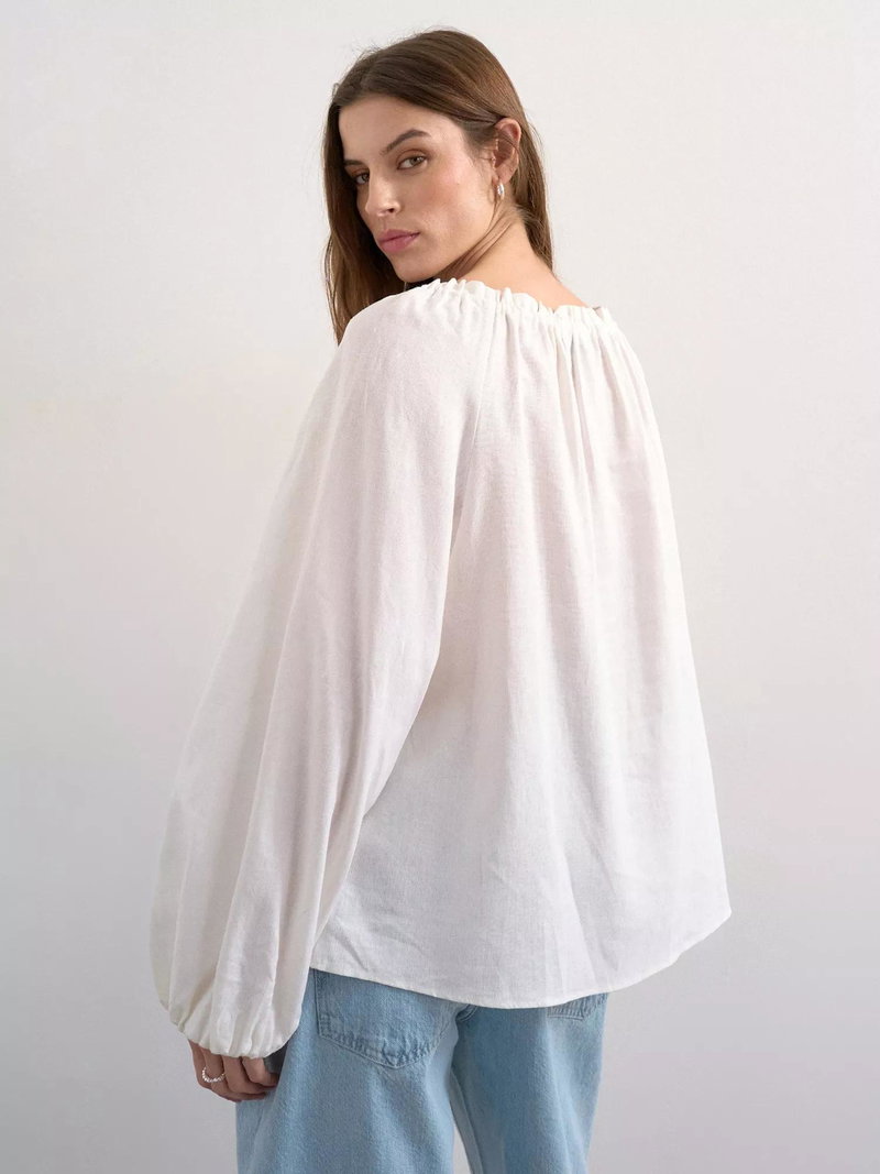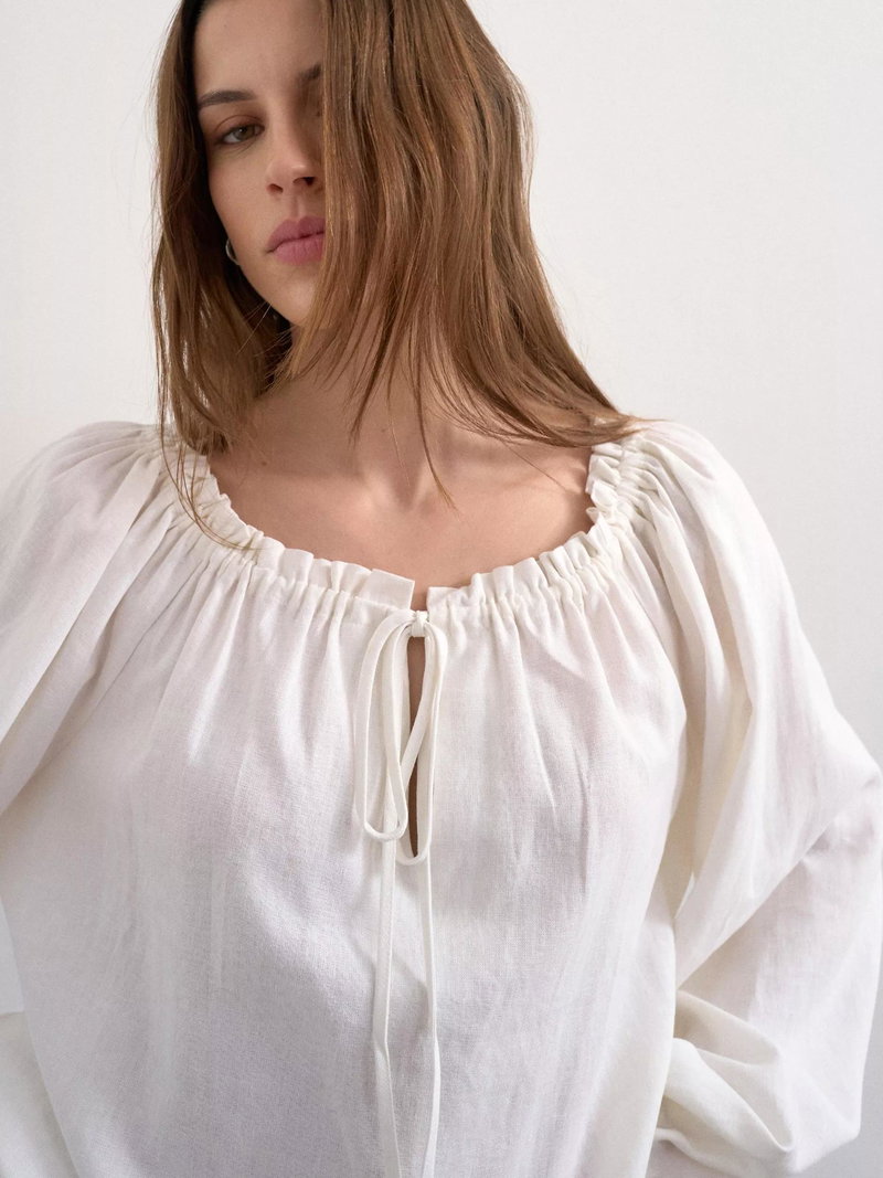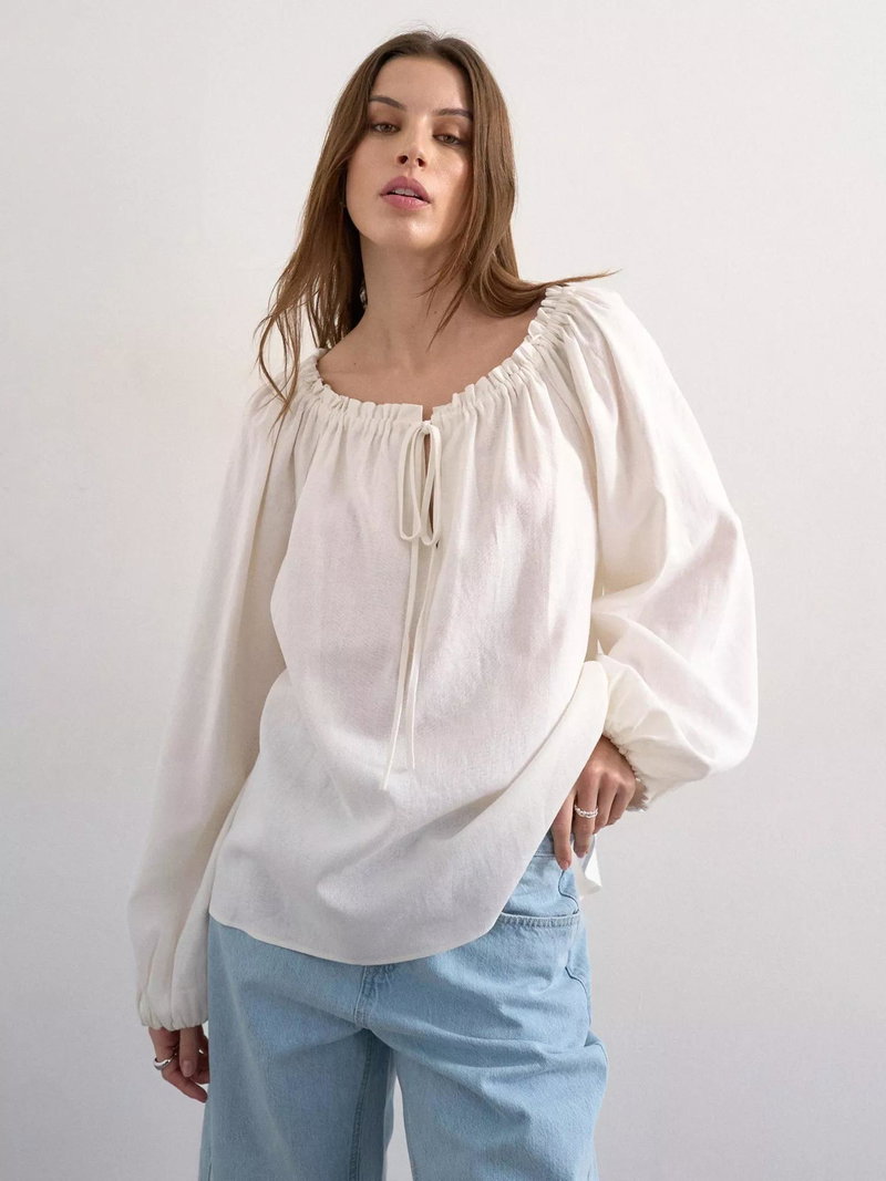 Smart and easy to wear, this linen blend blouse features an easygoing tie neck and comfortable long sleeves. Perfect for days when you want style that brings energy to everyday moments.