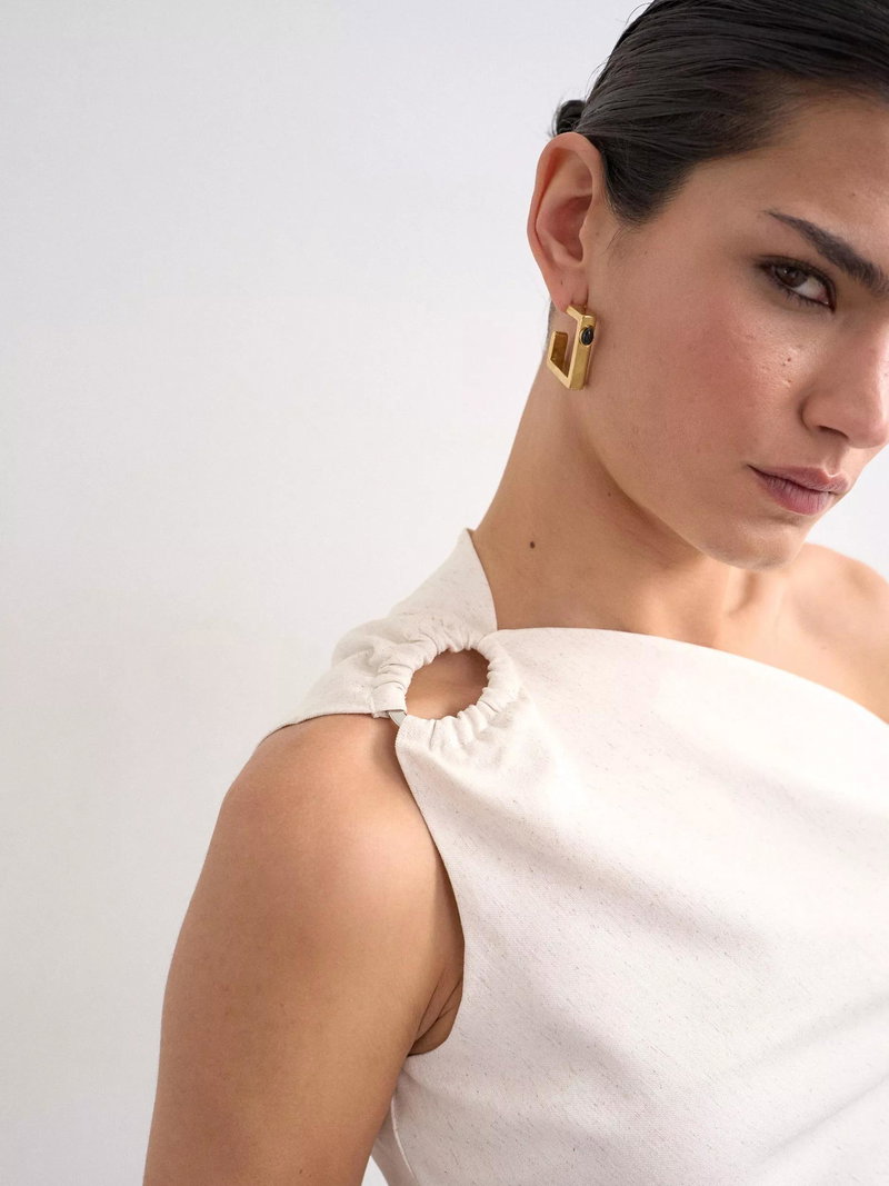 This Topshop sleeveless blouse features an asymmetric twist neckline, making it ideal for elevated days. The off-centre detail is echoed at the hem, carved with clean lines that pairs well with jeans, trousers and more.