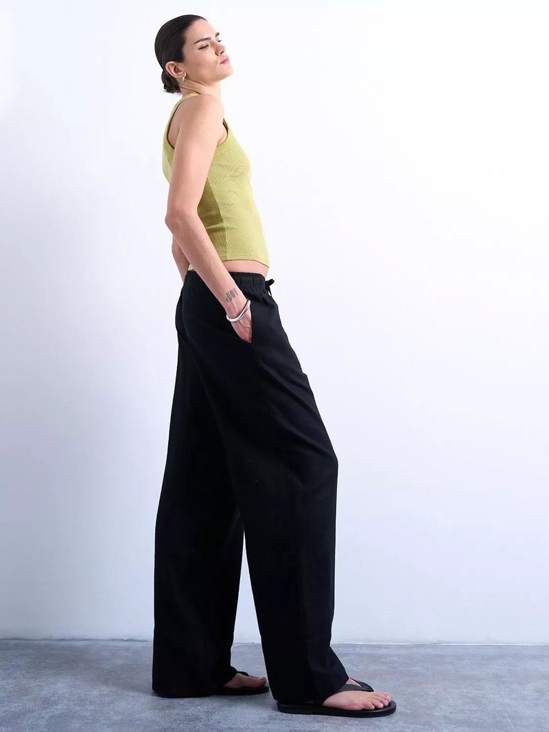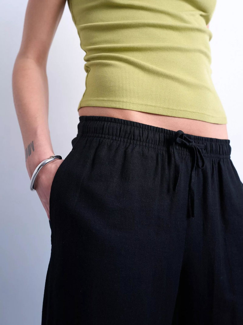 Fluidity meets structure in these wide-leg trousers, designed with a sophisticated drape. The linen blend offers a tactile, breathable texture paired with a silky-soft finish, ensuring you stay cool during summer heatwaves. A customisable drawcord waist brings a relaxed, modern ease to the tailoring.