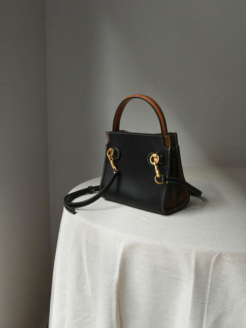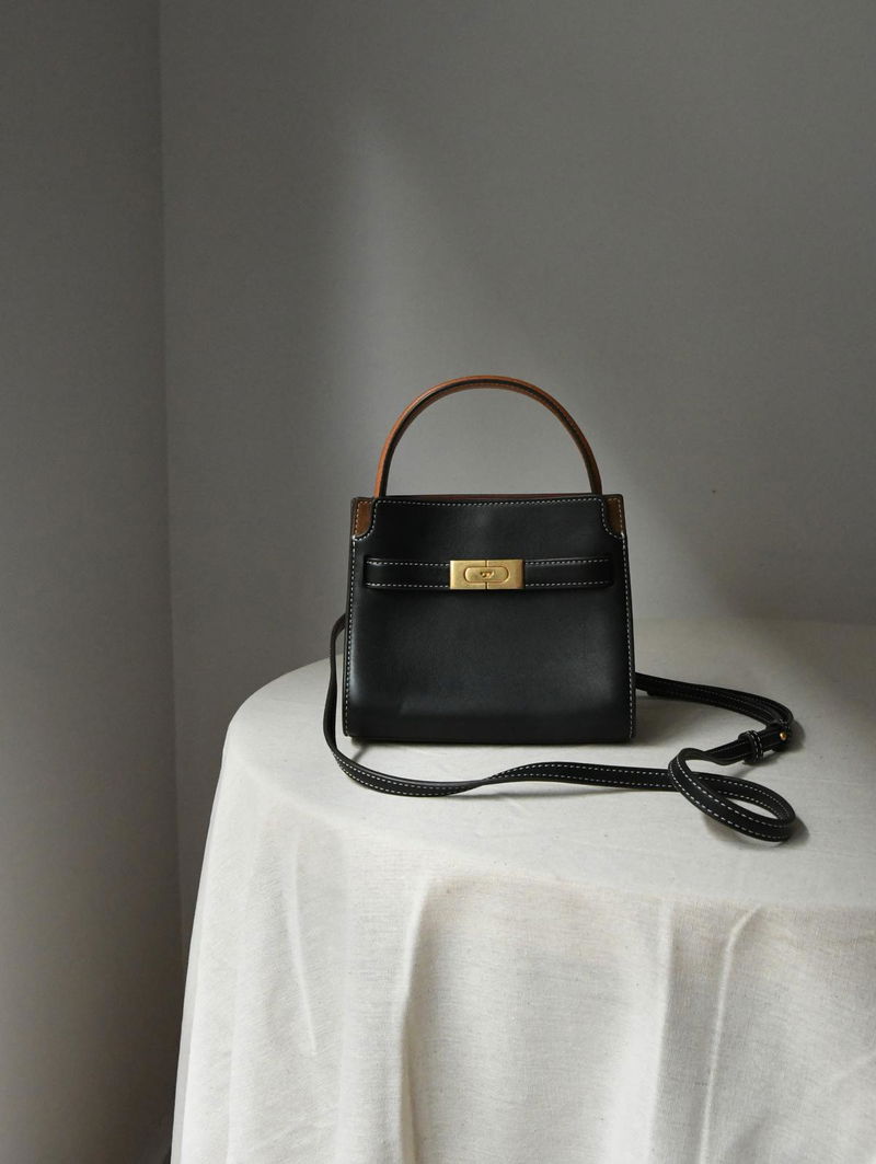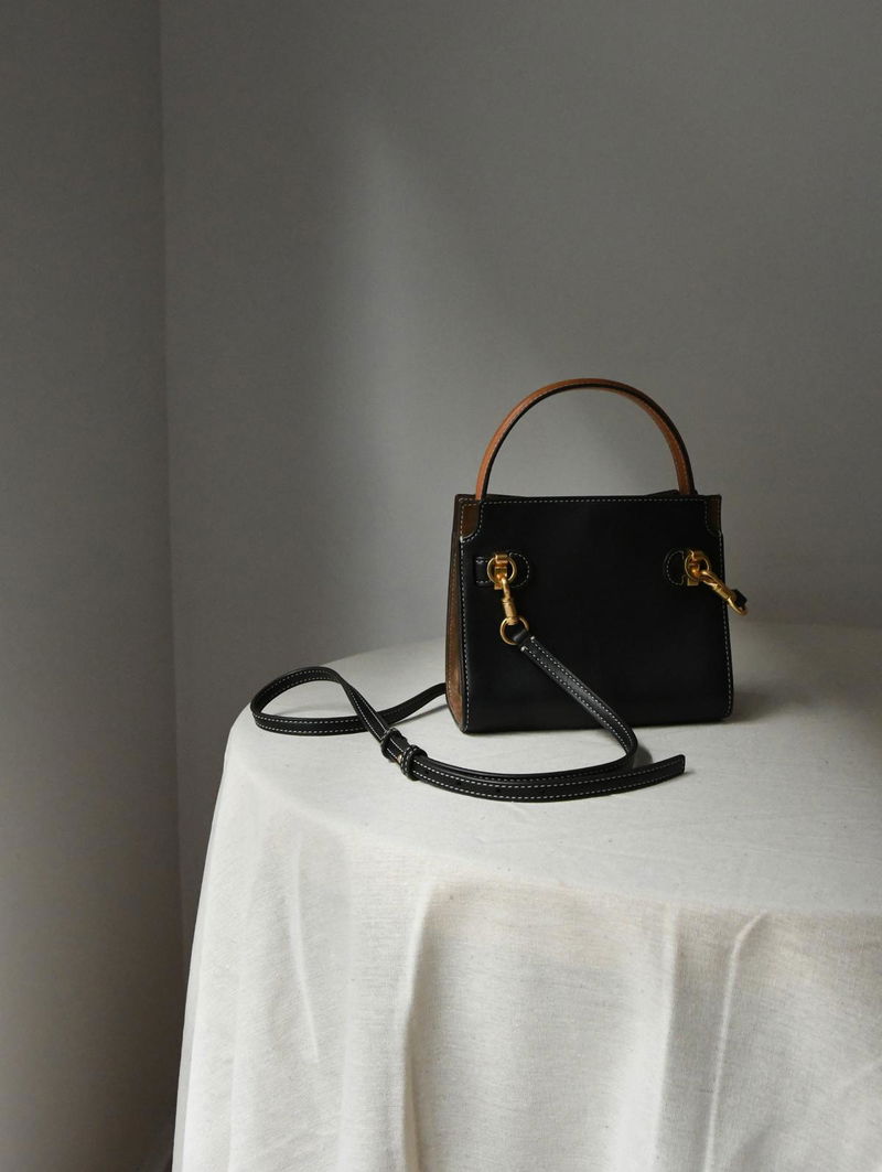 The Petite Lee Radziwill Double Bag contrasts structure and softness, mixed materials, different colors.