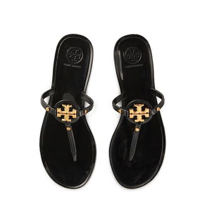 The Tory Burch Double T Flat Sandals pair simplicity with recognisable branding. Featuring the brand's double T emblem as a focal point, these designer sandals offer a comfortable flat profile ideal for extended wear.