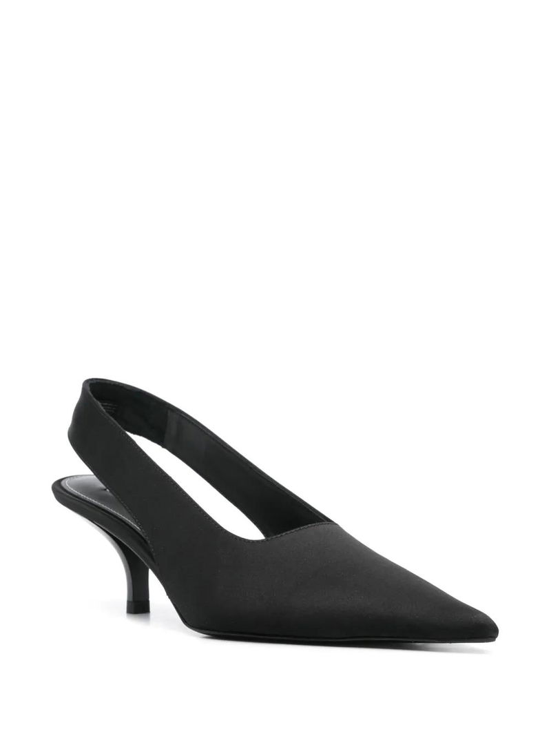 Black, slingback strap, sculpted heel, leather sole, branded leather insole.